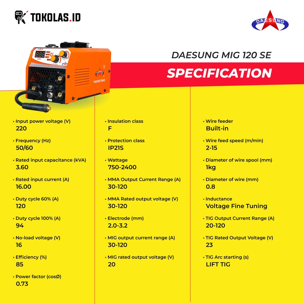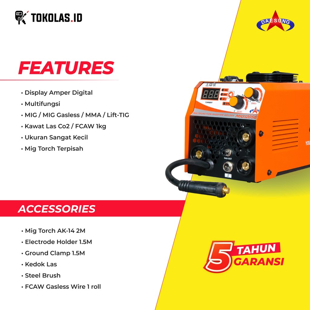 Mesin Travo Las Daesung MIG 120 SE 4 in 1 MMA MIG Gas CO2 MIG Tanpa Gas TIG Multifungsi Original