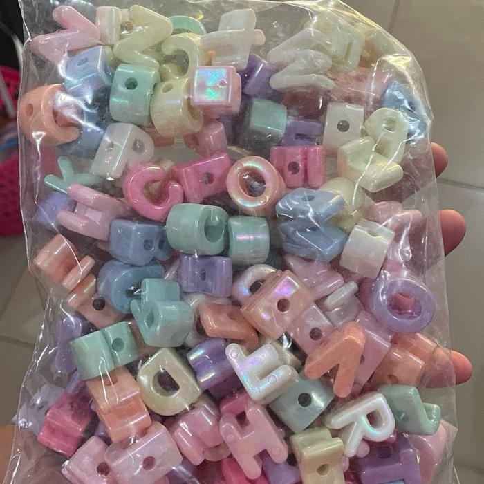 [1PON] MANIK HURUF BESAR ALPHABET VOKAL KONSONAN WARNA CAMPUR MACARON SHIMMER DOFF AB MOTE BEADS KERAJINAN DIY BAG CHARM PHONE STRAP - SHIMMER