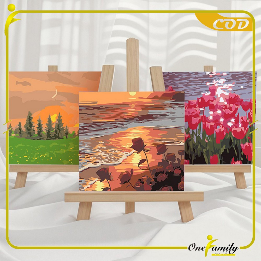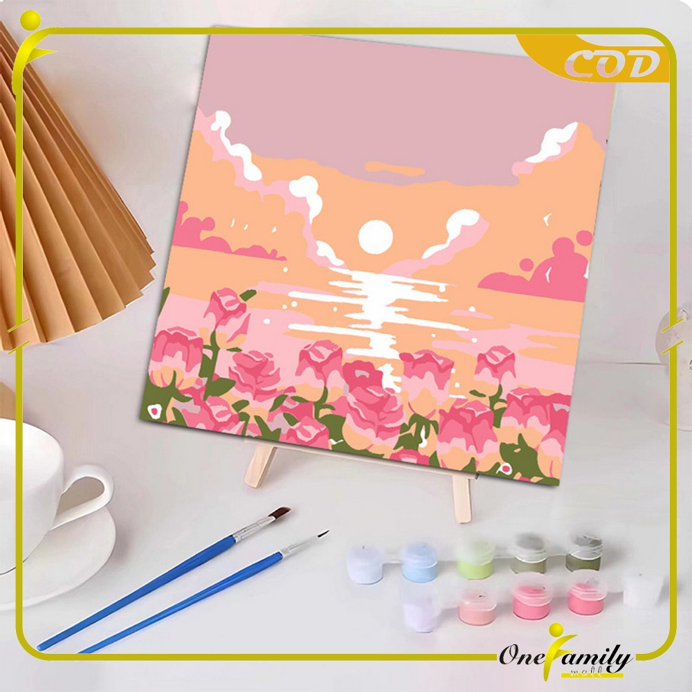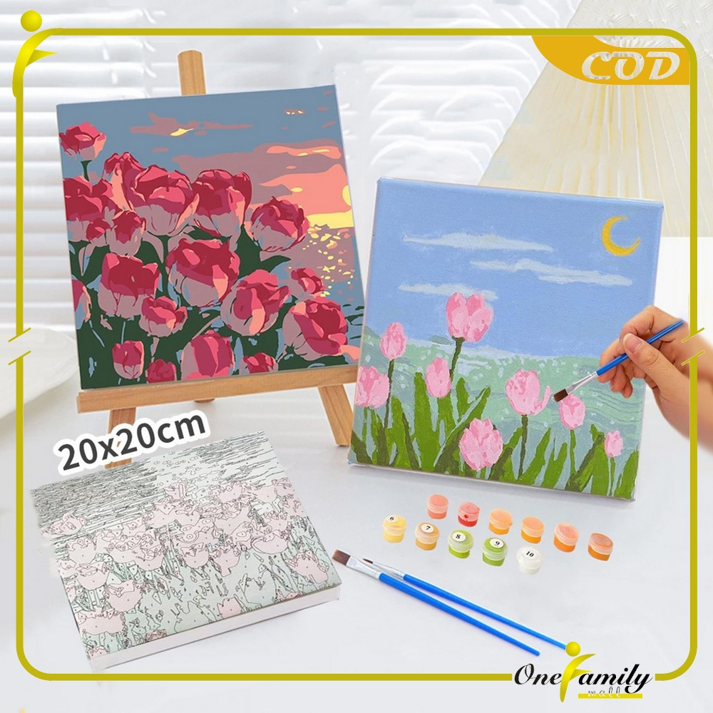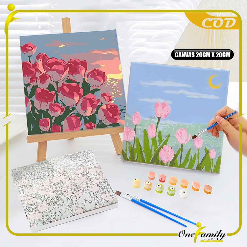 ONE-A110 Paint By Number Kit 20x20cm Kanvas Siap Lukis / DIY Canvas Acrylic Aesthetic / Diy Digital Painting Canvas Lukisan Bunga Pemandangan Wall Decoration