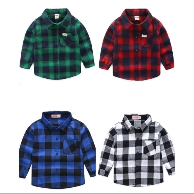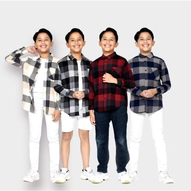 Kemeja Flanel anak lengan panjang laki laki perempuan 1-14 tahun | kemeja flaneel tangan panjang anak cowok cewek kemeja anak murah distro lengan panjang flanell anak laki laki