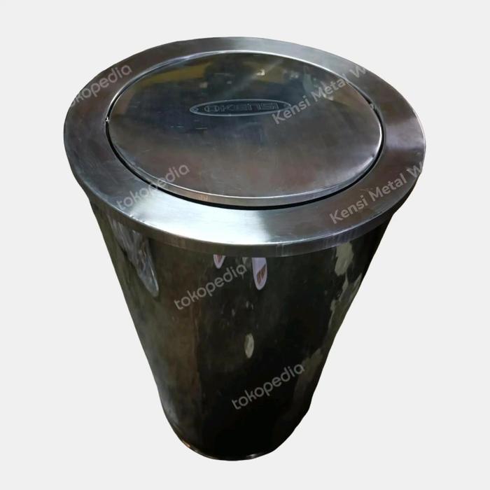 Tempat Sampah Standing Dustbin Stainless Dia.40xT.80 cm Tutup Swing - Stainless Dus
