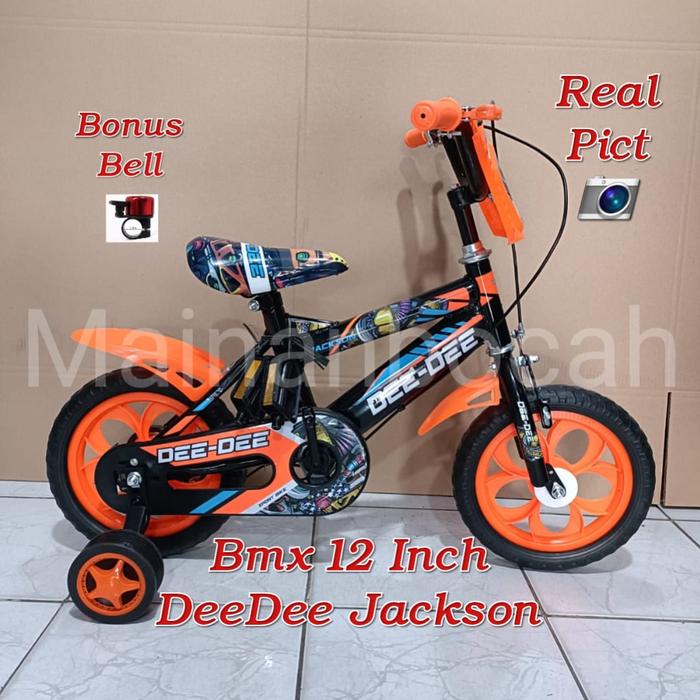 SEPEDA ANAK LAKI BMX 12 DEE-DEE JACKSON BAN MATI - BRAVO HITAM MERAH