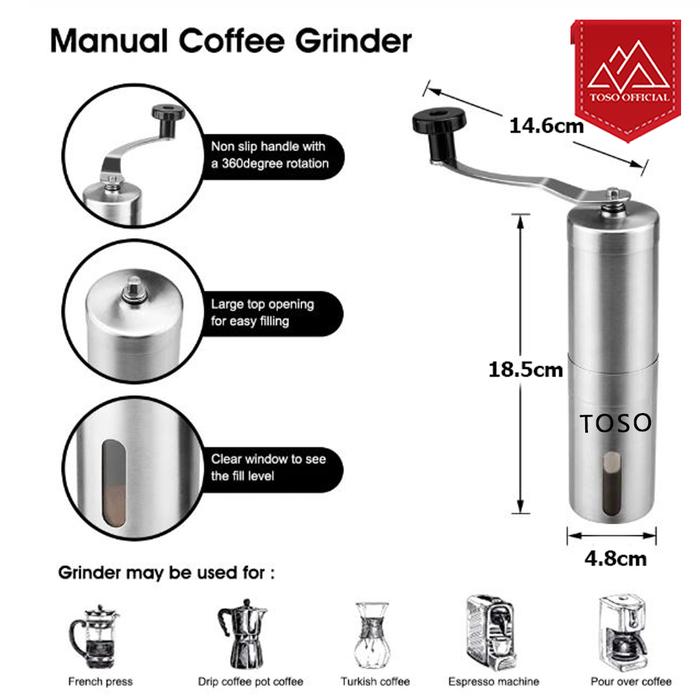 Travel Handy Coffee Grinder Adjustable Gilingan Penggiling Kopi Manual Ceramic Burr - GRINDER STAINLESS