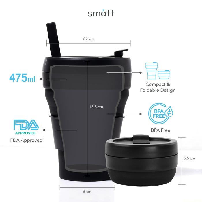 Smatt Foldable Cup - Gelas Kopi Portable Gelas Lipat Silikon - Black