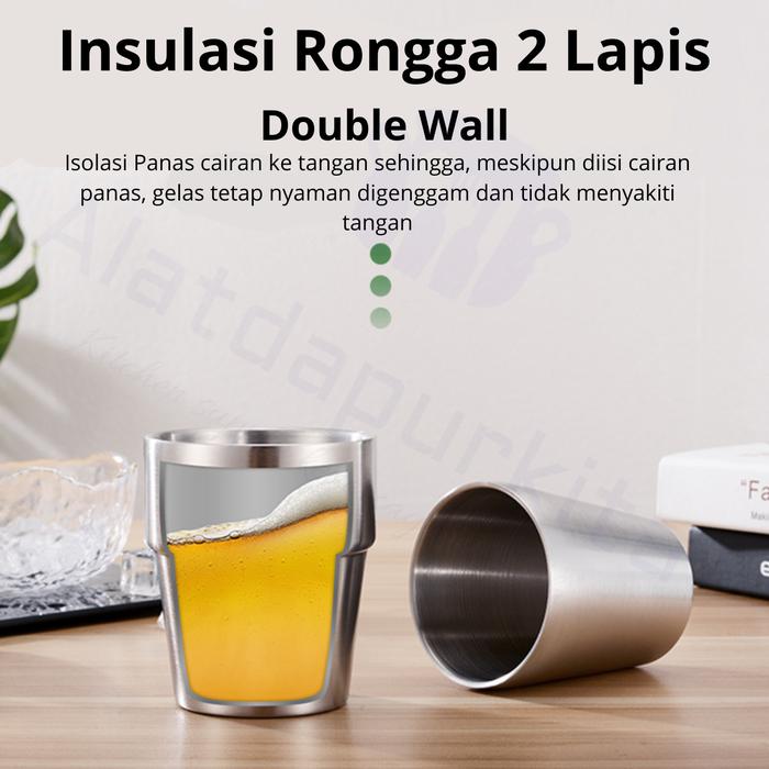 Gelas Cangkir Cup Minum Kopi Teh Korea Stainless 304 Double Wall Tebal Insulated Heat Anti Karat - 260 mL