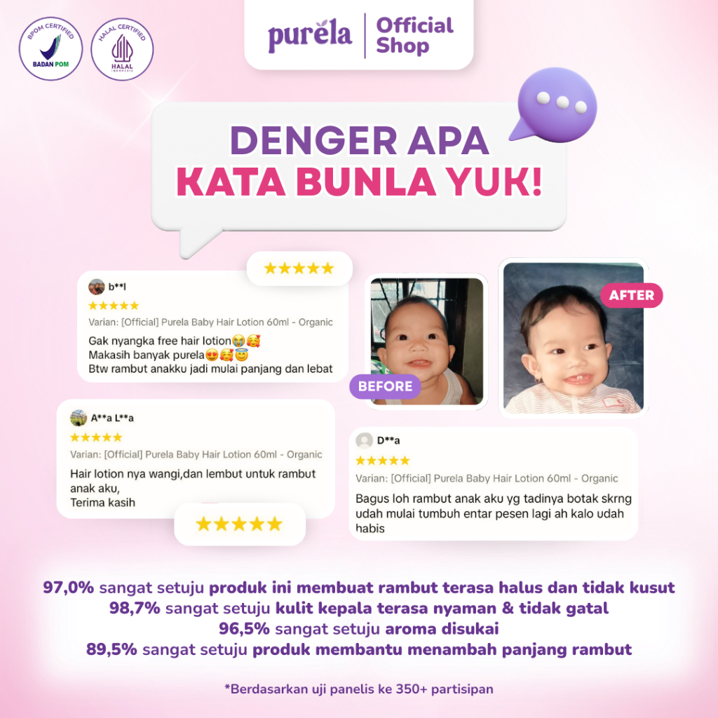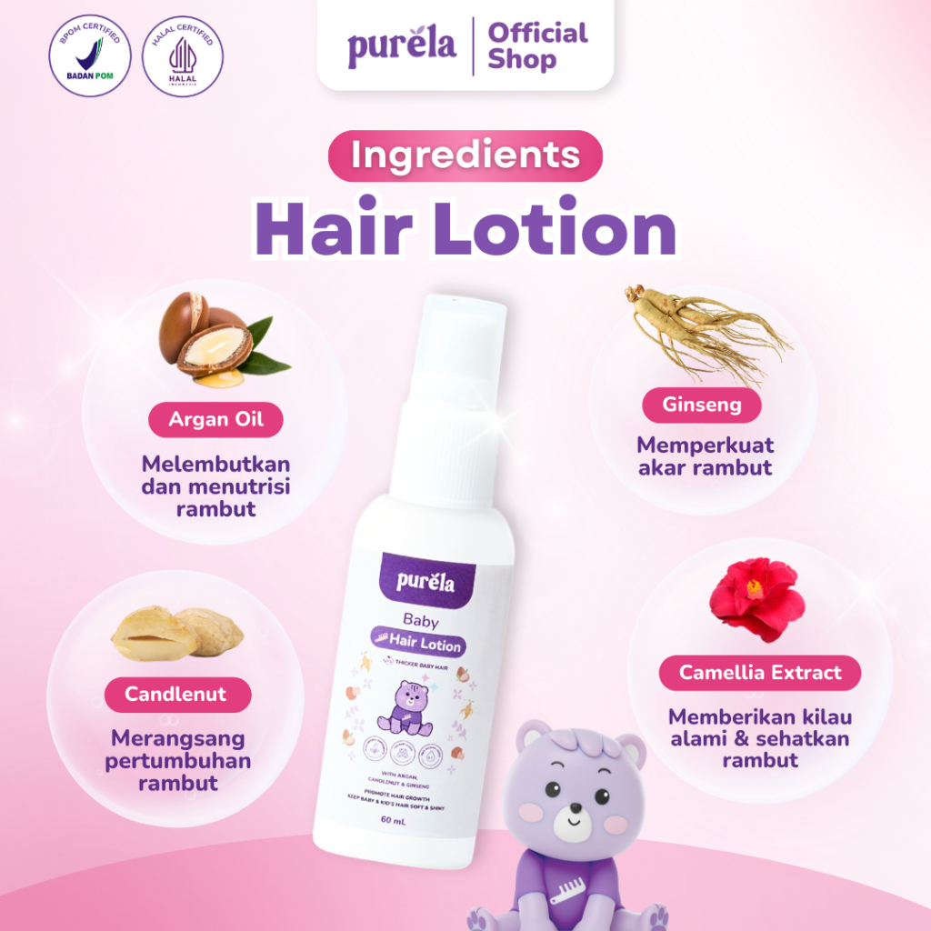 PURELA Hair Lotion 60 Lotion Rambut Bayi Anak Perawatan Rambut Bayi Bahan Alami dan Organik
