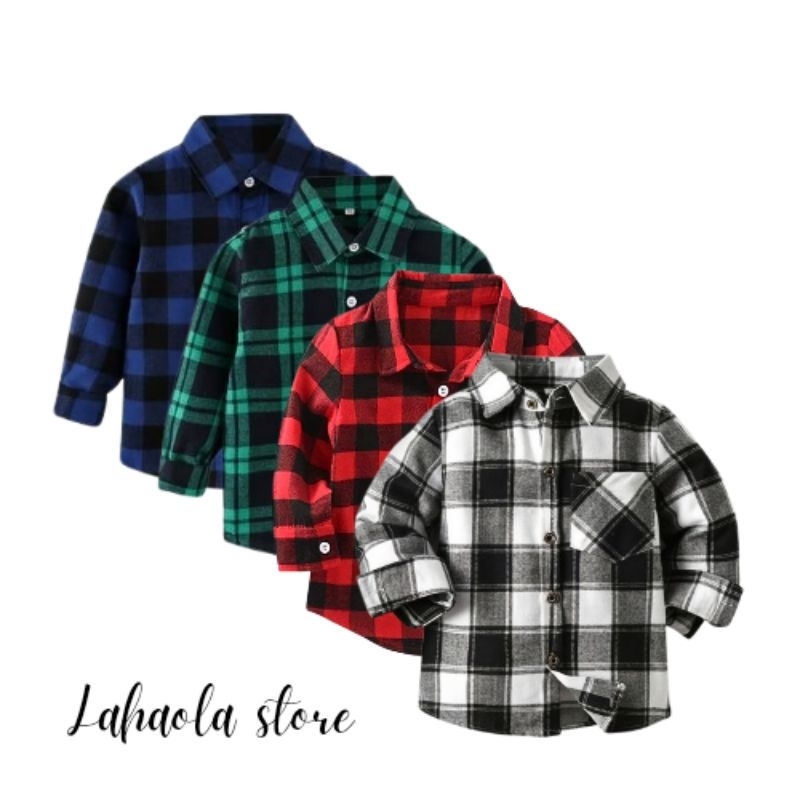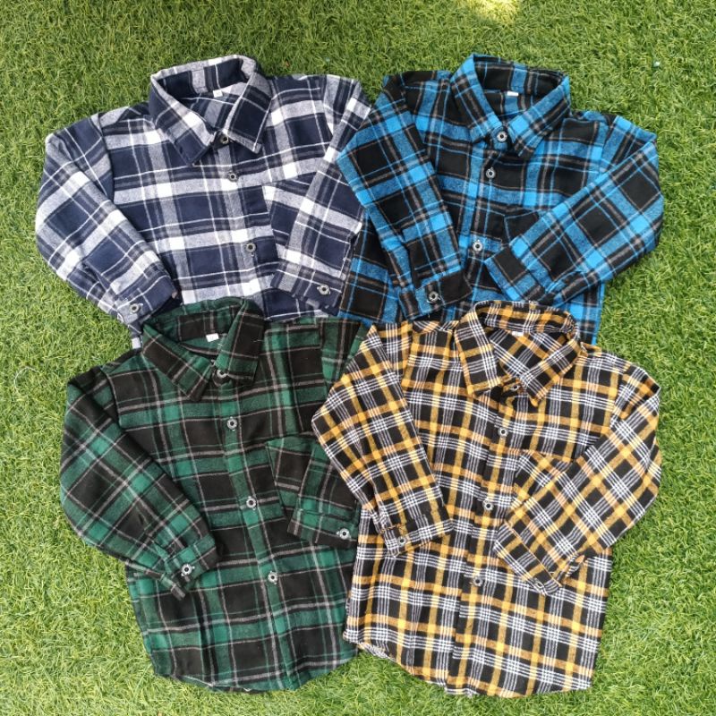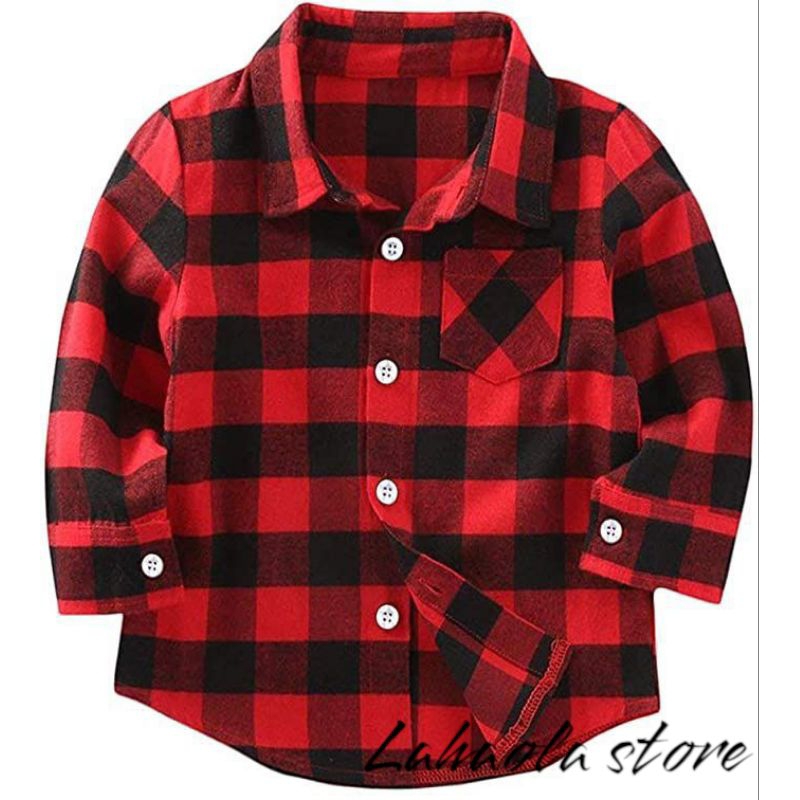 Kemeja flanel anak usia 1-12 tahun lengan panjang kotak unisex