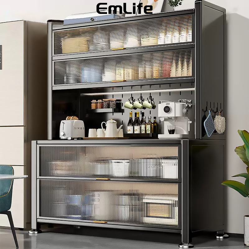 Rak Dapur Lemari Dapur Dengan Pintu Rak Penyimpanan Microwave Oven Rak Multi-Lapisan Lemari Piring Lantai Berdiri Rak