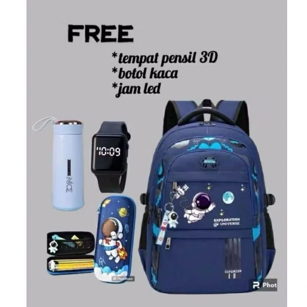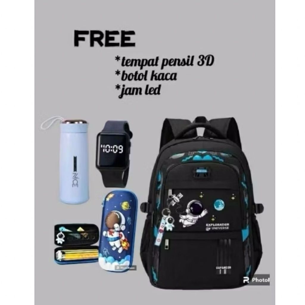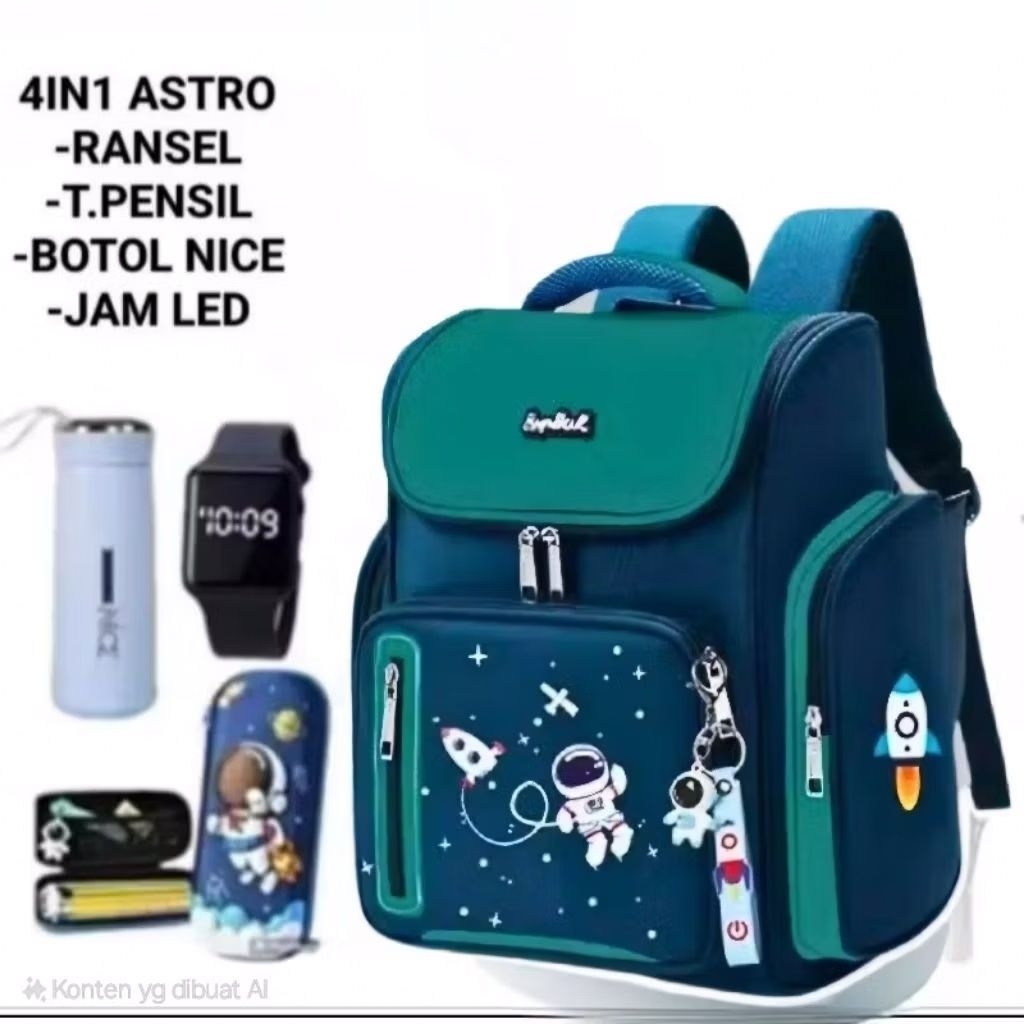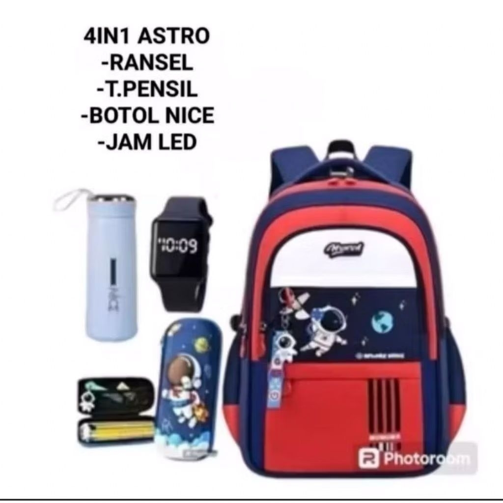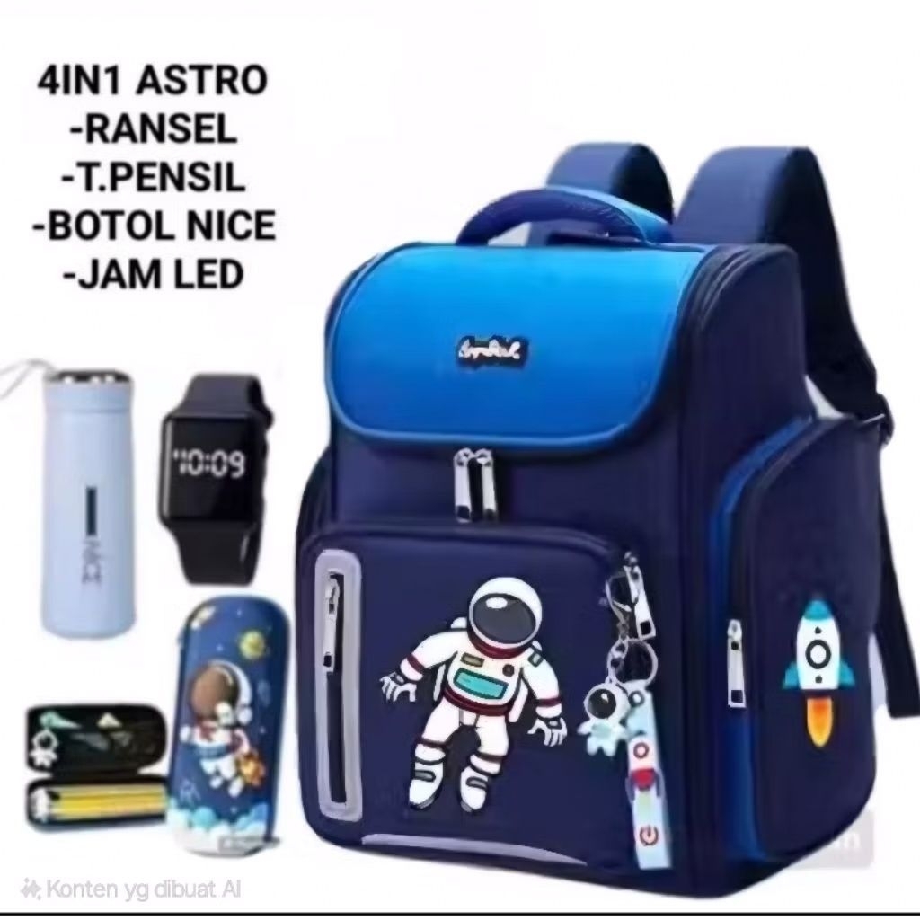 PAKET BANYAK BONUSNYA 4IN1 TAS RANSEL SEKOLAH ANAK LAKI LAKI SD MOTIF ASTRONOT TABUNG