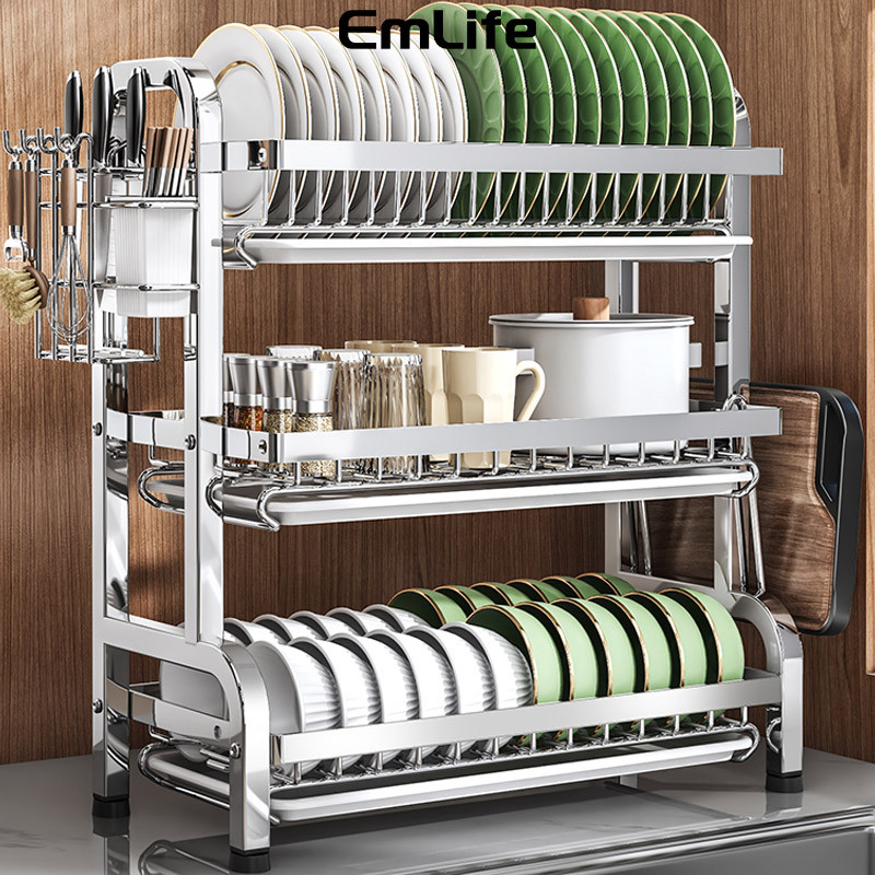Rak Piring Stainless Steel Rak Dapur Cuci Piring Wastafel Rak Piring Penyimpanan Rak Peralatan Dapur Dengan Aksesoris