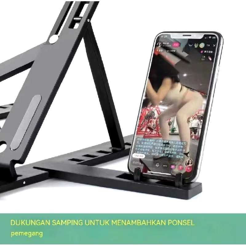 Peyangga Laptop Stand Holder Dengan Dudukan Telepon Lipat Adjustable Anti Slip / Notebook