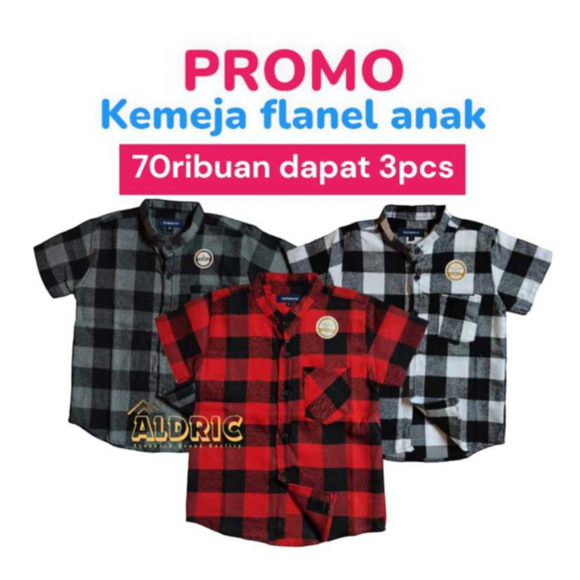 PAKET HEMAT 80RIBU DAPAT 3 PCS KEMEJA FLANEL ANAK LENGAN PENDEK BAHAN FLANEL PREMIUM