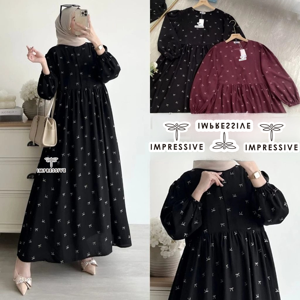 Arsy Midi Dress Gamis Rayon Motif Terlaris Baju Lebaran Busana Muslim Wanita By Impusstore