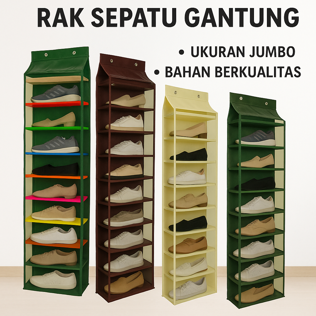 Rak Sepatu Dan Sandal Gantung 9 Susun Bahan Premium Dan Ukuran Original