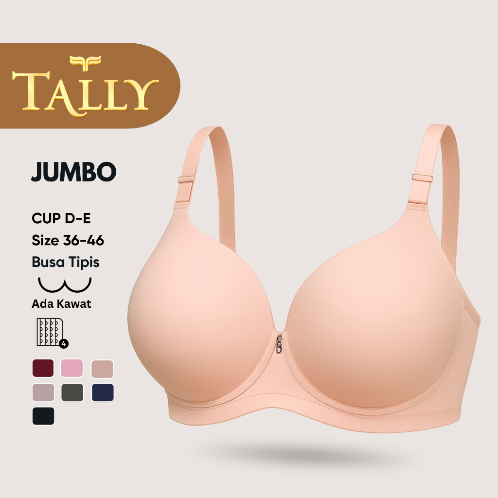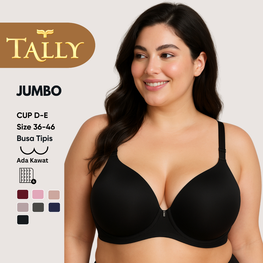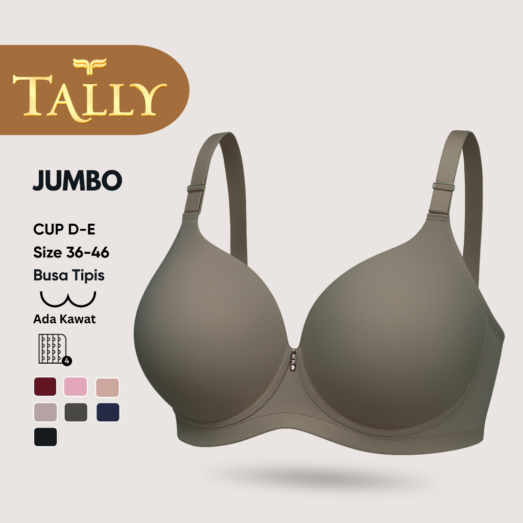 TALLY Bra Ada Kawat Busa Tipis Bahan Nilon Cup D E Kait 4 Bra JUMBO Stretchable BH 3288 Sarwendah