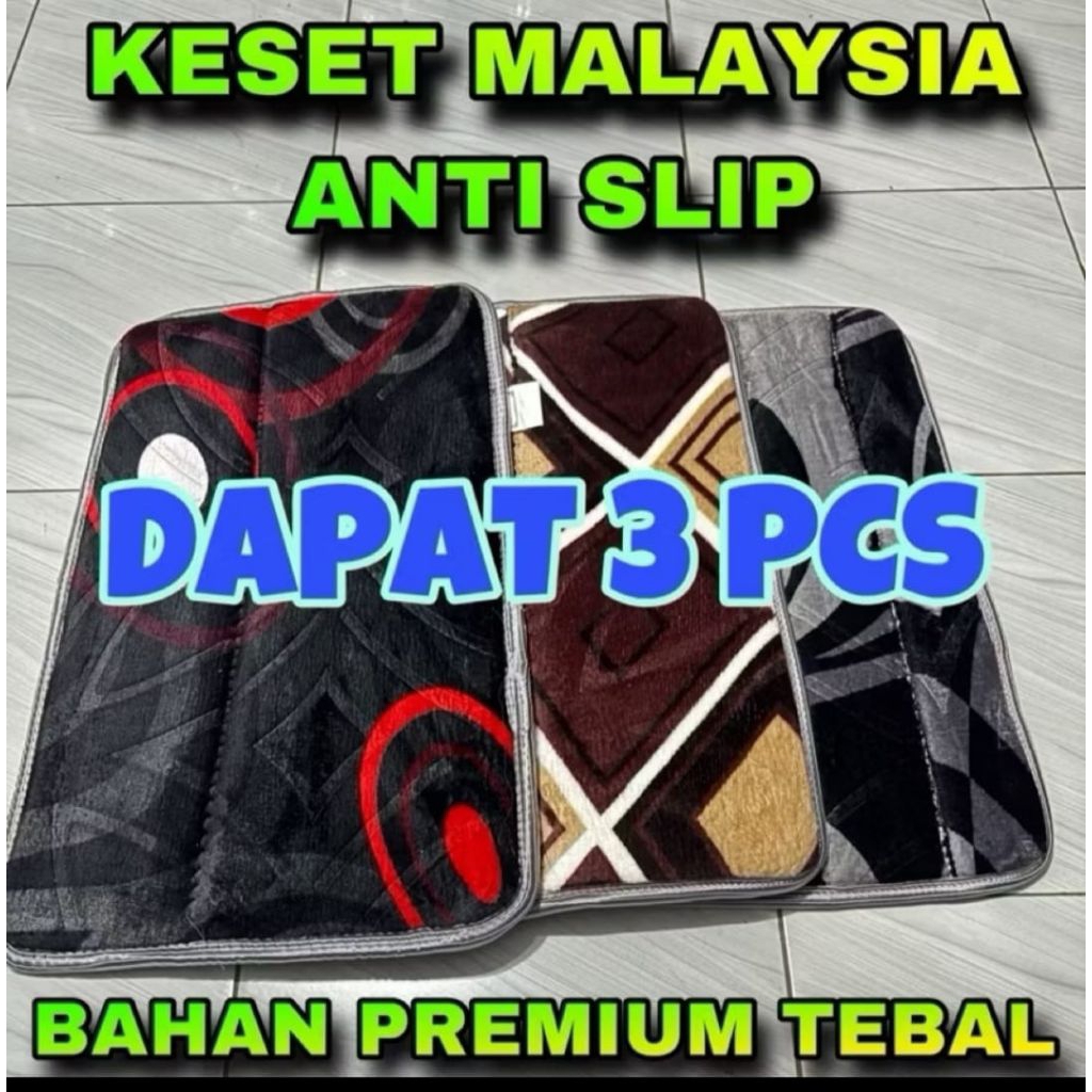 Promo 3 Pcs Keset Malaysia Busa Premium| Keset Kaki Tebat Empuk Anti Slip Daya Serap Tinggi
