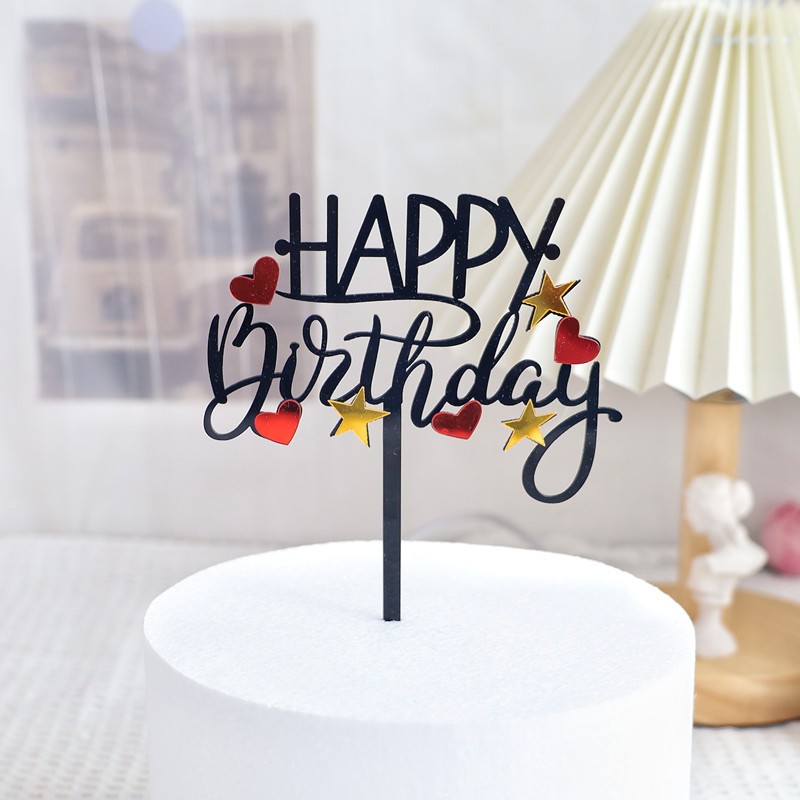 CAKE TOPPER AKRILIK HAPPY BIRTHDAY HIASAN KUE LOVE BINTANG TOPI STAR DEKORASI KUE ULANGTAHUN ACRYLIC