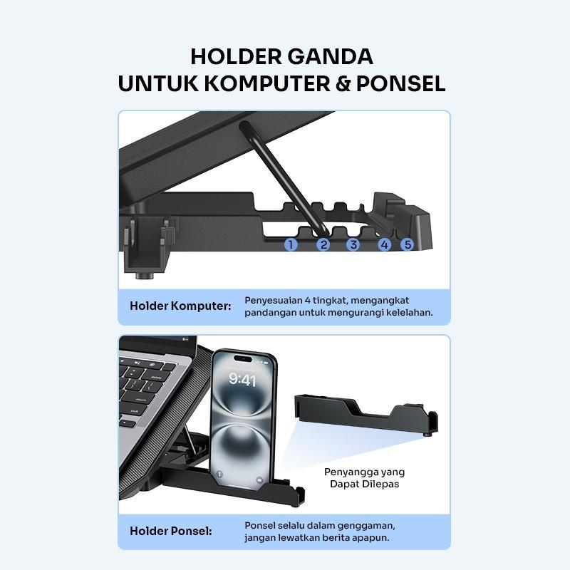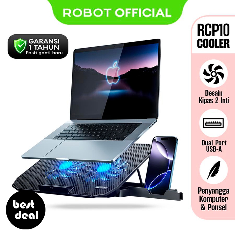 ROBOT RCP10 Cooling Pad Laptop 10-16 inch Dual Port USB-A 2 Kipas Fan Pendingin Holder Laptop HP Original - Resmi 1 Tahun