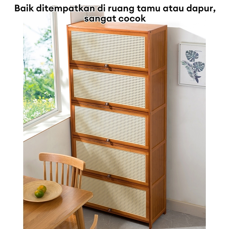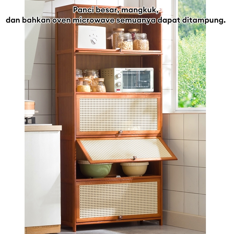 Rak Dapur Rak Peralatan Dapur Serbaguna Lemari Dapur Lemari Kayu Rotan Rak Oven Microwave Tertutup