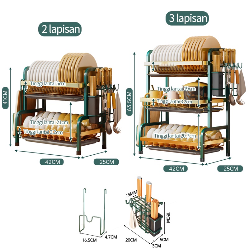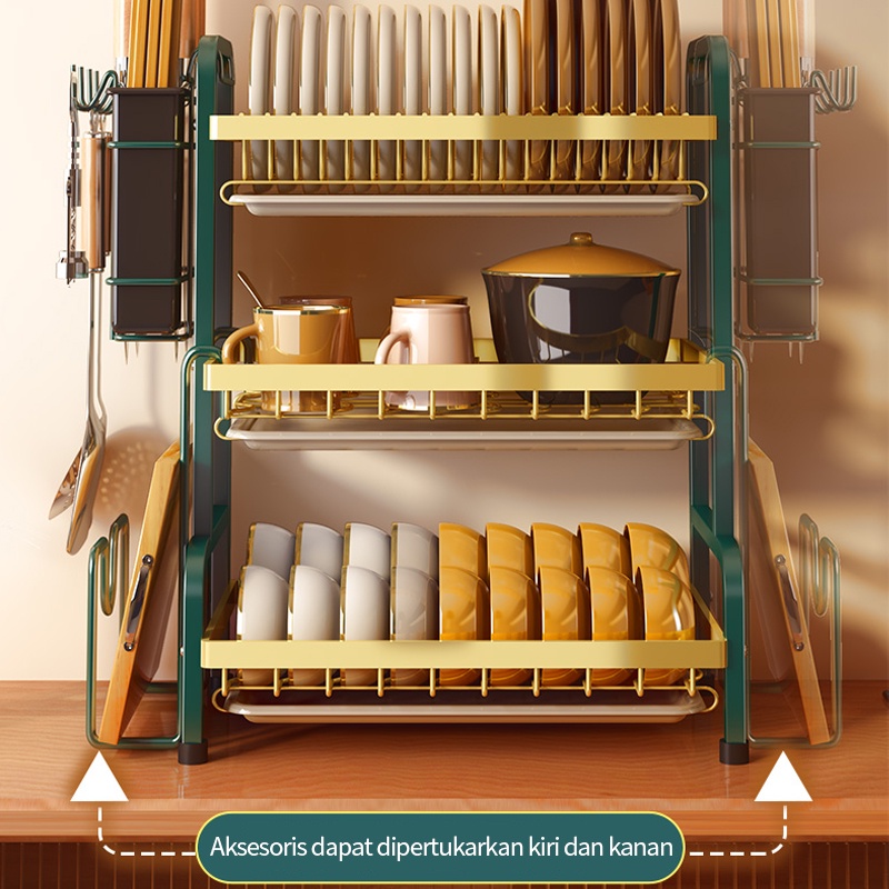Rak Dapur Rak Piring Rak Serbaguna Rak Dish Drainer Dengan Aksesoris