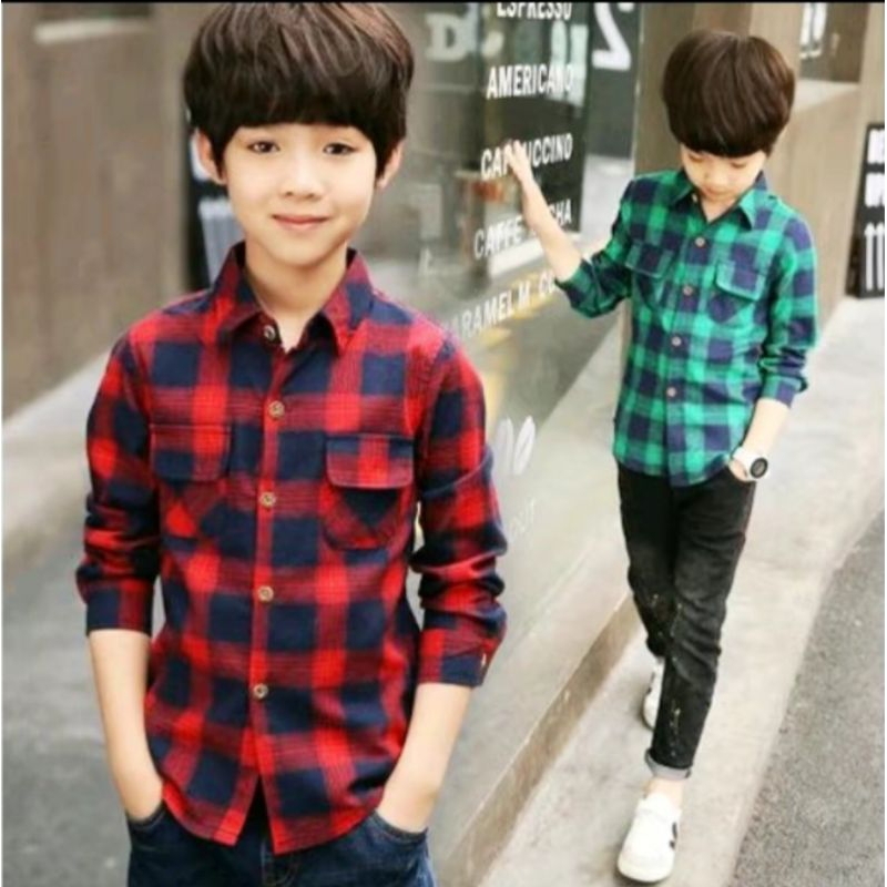 Kemeja Flanel Anak Umur 8-15 Tahun Kotak-Kotak Lengan Panjang Kualitas Premium