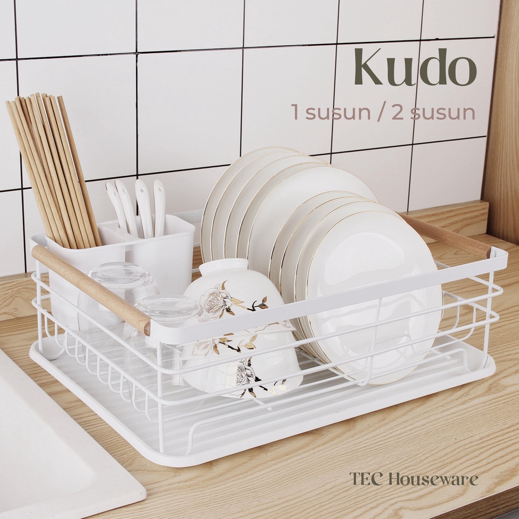 Rak Piring Organizer • Tec • Kudo Rak Dapur Piring Nordic Style 1 Tingkat Penganggan Kayu Estetik Rak Piring Dapur Anti