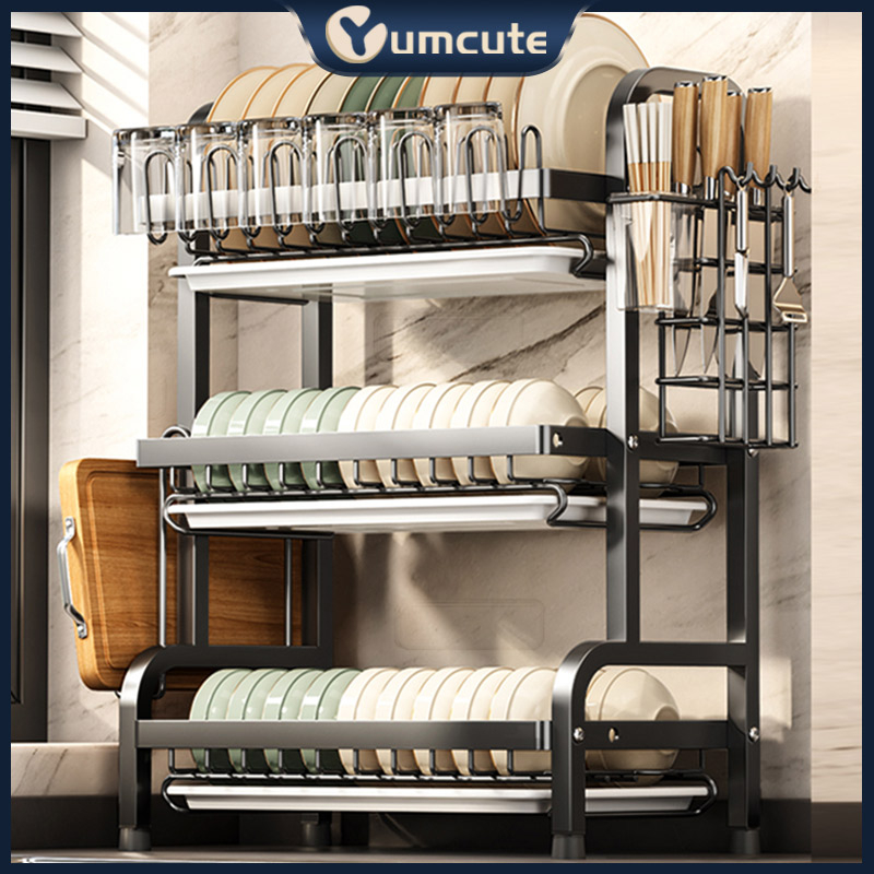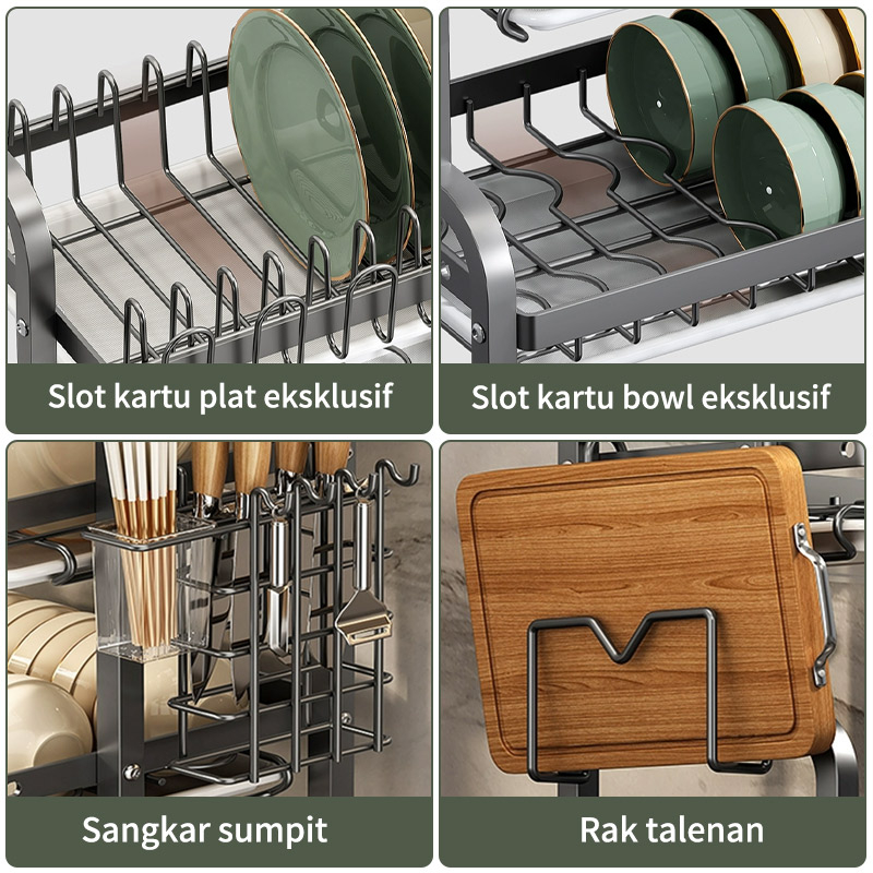 Rak Piring Rak Dapur Rak Cuci Piring Rak Penyimpanan Dapur Rak Pengering Piring Rak Mangkuk Piring Dengan Aksesoris