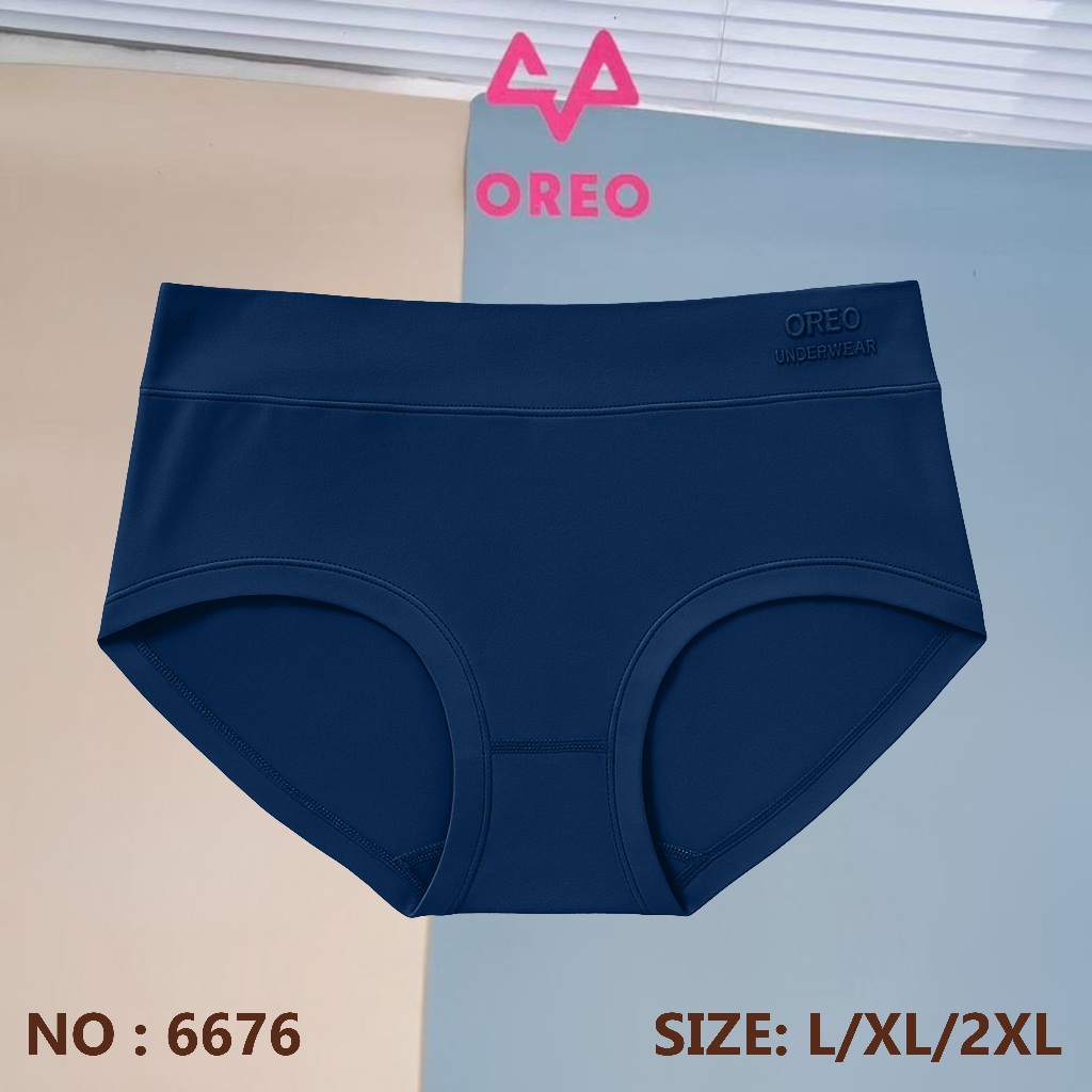 OREO 6PCS BF6676 CELANA DALAM WANITA COTTON COOLMAX POLOS LOGO TIMBUL