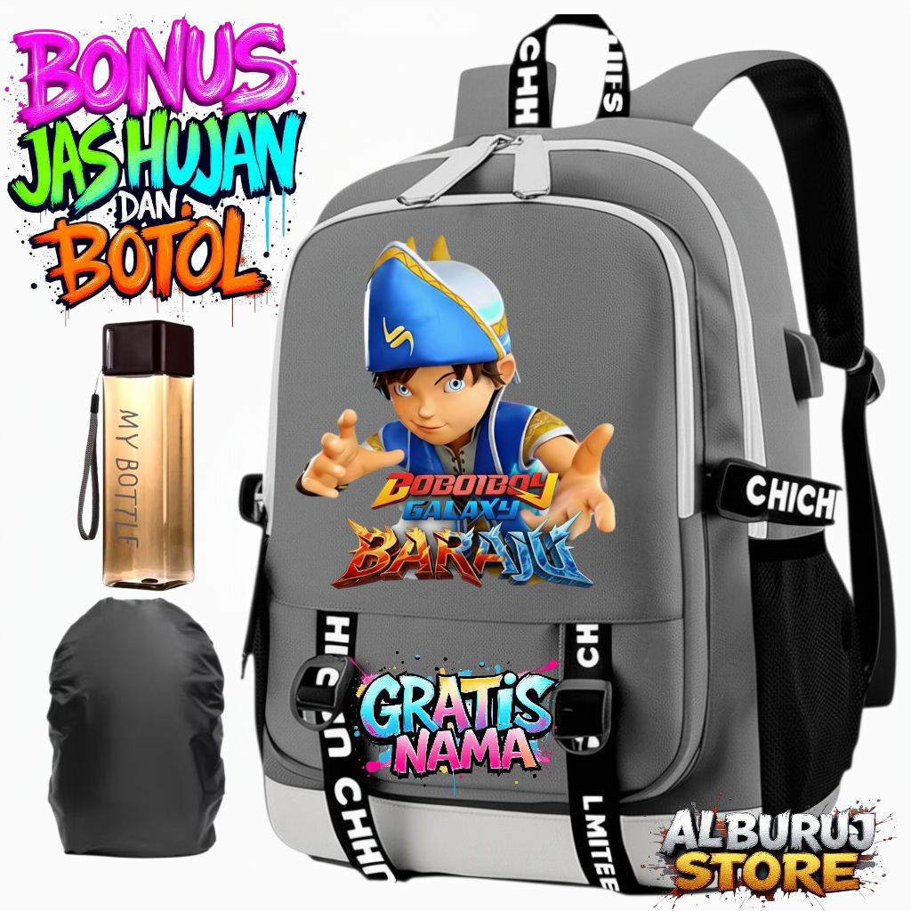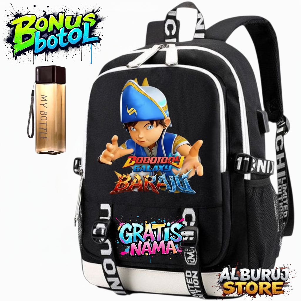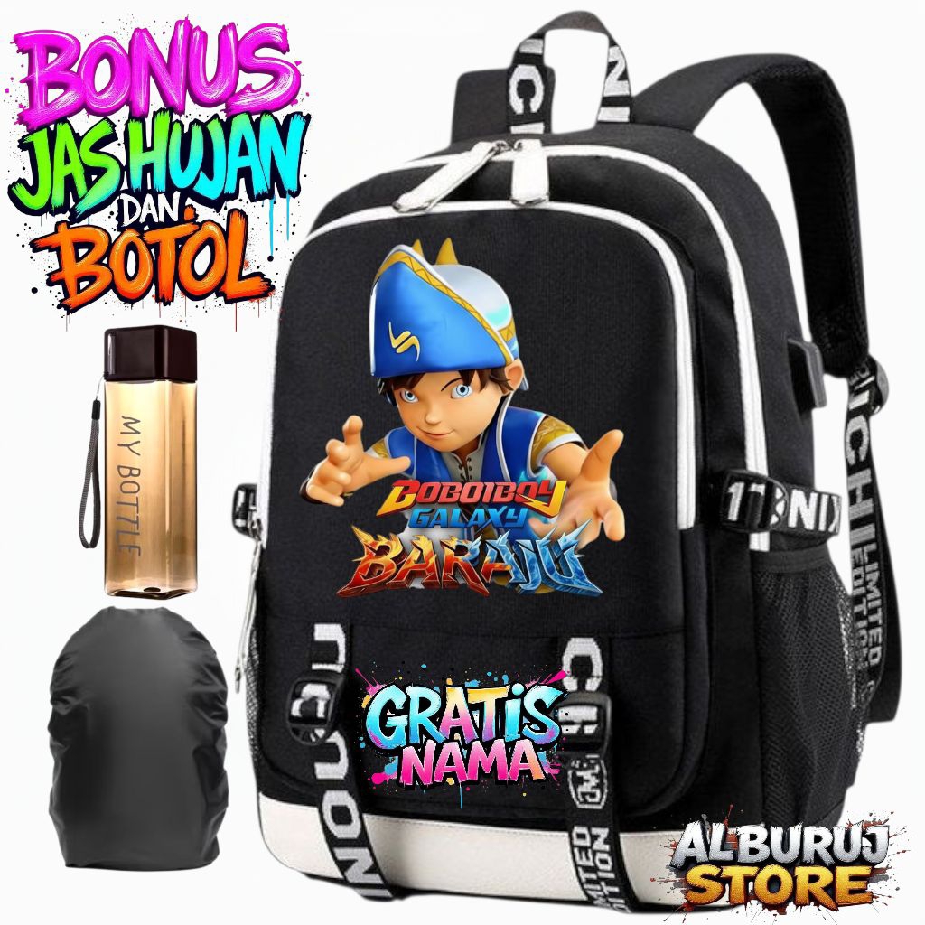 TAS RANSEL SEKOLAH ANAK LAKI-LAKI MOTIF BOBOIBOY GALAXY BARUJU + GRATIS NAMA | TAS ANAK SD MUAT LAPTOP & BOTOL MINUM