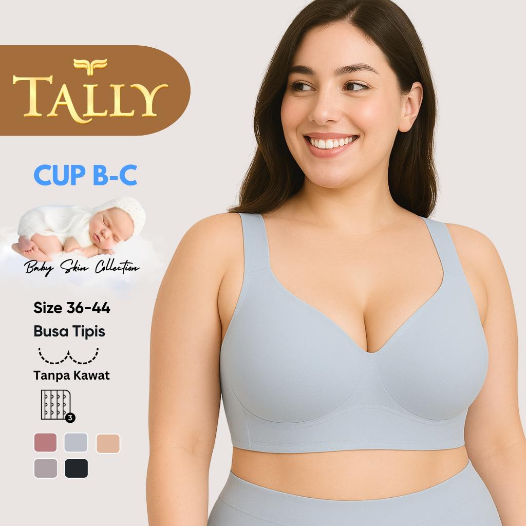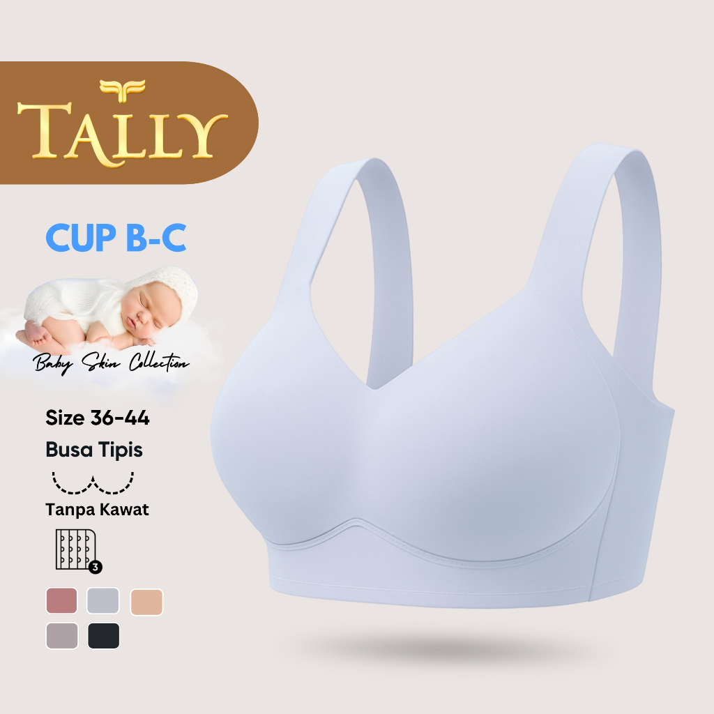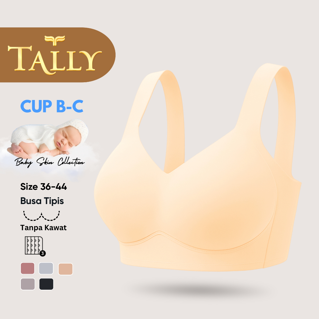 TALLY Bra Tanpa Kawat Busa Tipis Bahan Nilon Seamless Baby Skin CUP B C Kait 3 Bra PREMIUM BH 2135 Sarwendah