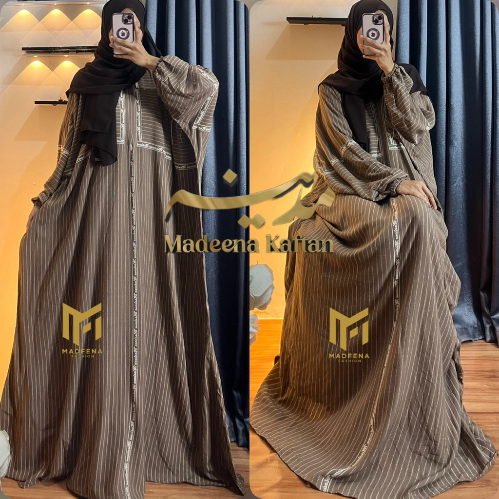 Kaftan Motif Salur Madeena Rayon Jumbo Adem Nyaman Busui Gamis Dress Panjang Wanita Remaja Dewasa