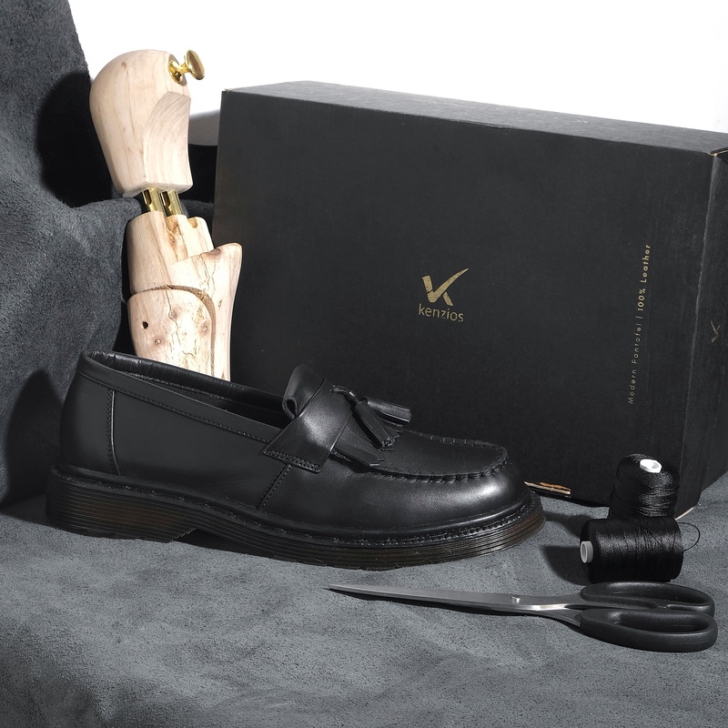 Kenzios Sepatu Formal Pria Kulit Asli Gates Black Solid Series