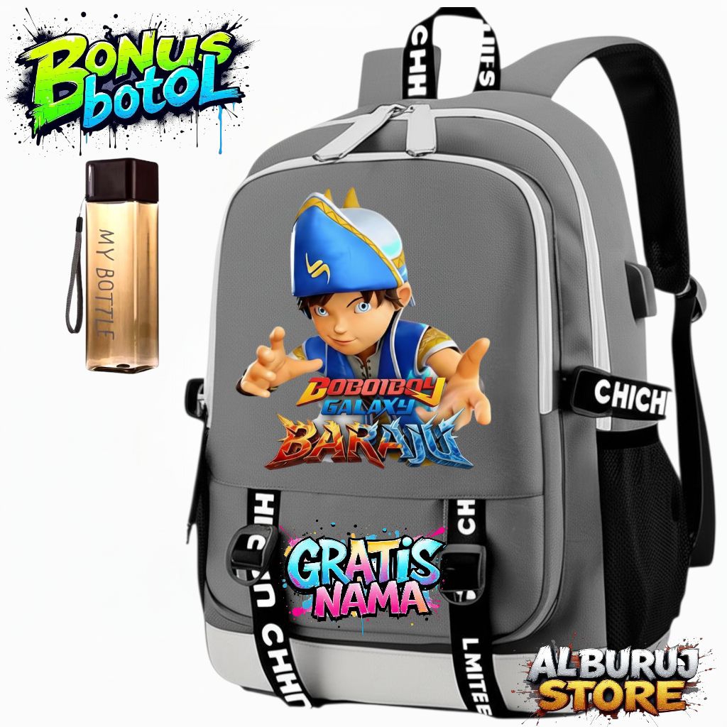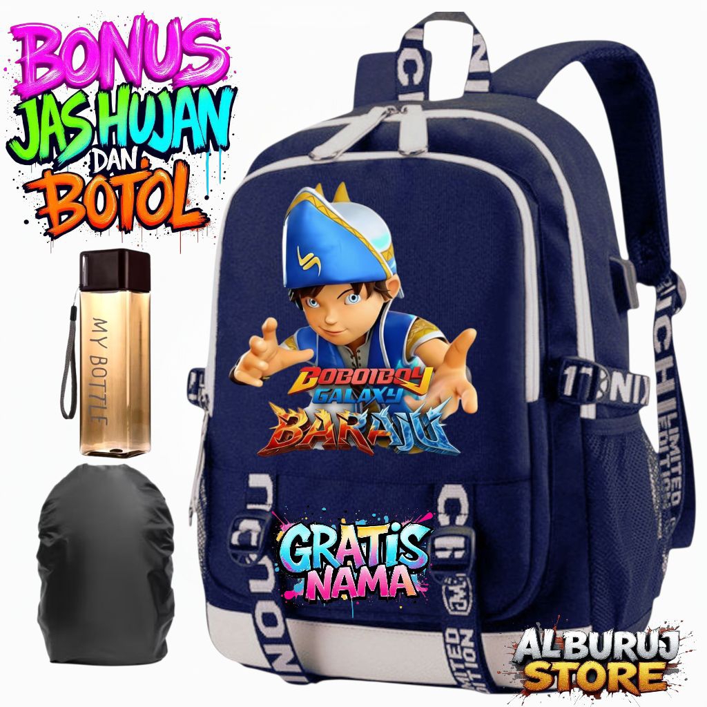 TAS RANSEL SEKOLAH ANAK LAKI-LAKI MOTIF BOBOIBOY GALAXY BARUJU + GRATIS NAMA | TAS ANAK SD MUAT LAPTOP & BOTOL MINUM