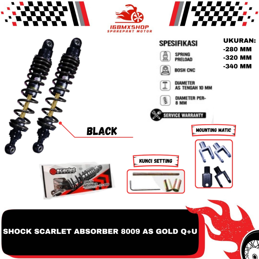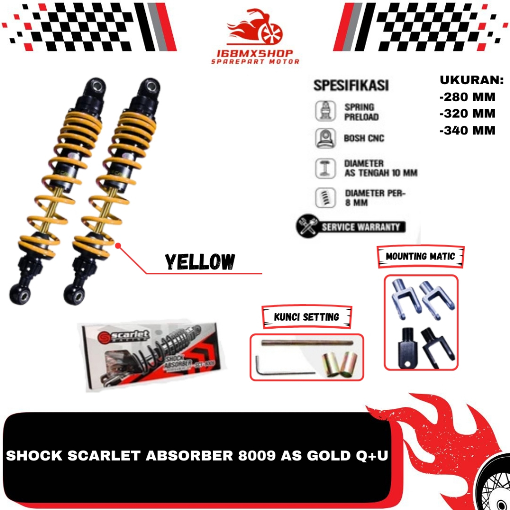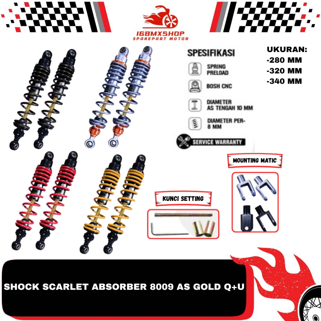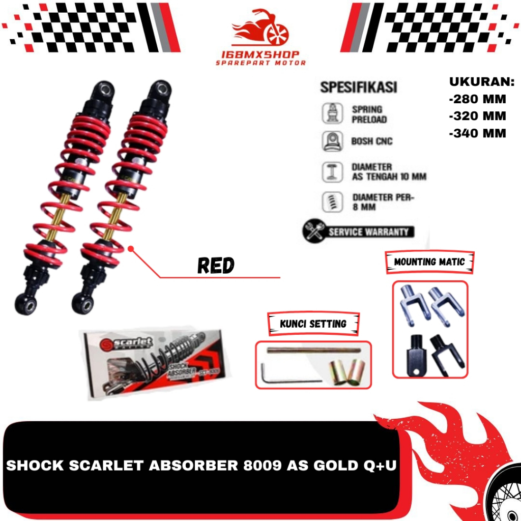 [PROMO] Shock Shockbreaker Absorber Scarlet 8009 AS Gold (O+U) Uk 280 320 340 mm shock matic bebek