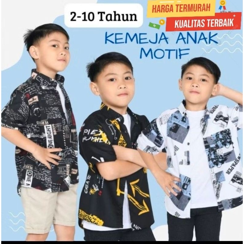 Kemeja Anak Laki Laki Motif Surfing Pantai Atasan Anak Usia 2 3 4 5 6 7 8 9 10 11 12 Tahun