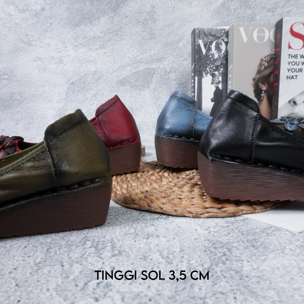 Sepatu Wedges Wanita 3,5 CM Import CLARKS AH 66728 100 PERSEN Kulit Sapi Asli Free Box Perempuan Kekinian