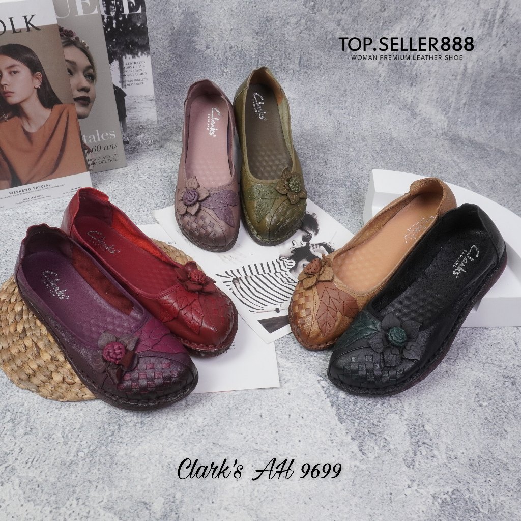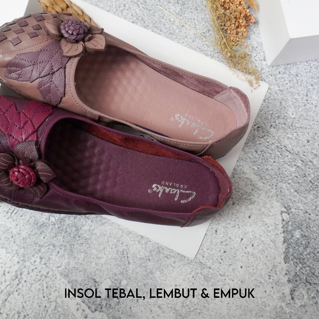CLARKS Sepatu Wanita Flatshoes Import 100 PERSEN Kulit Asli AH 9699 Free Box New Melati Woman Shoes