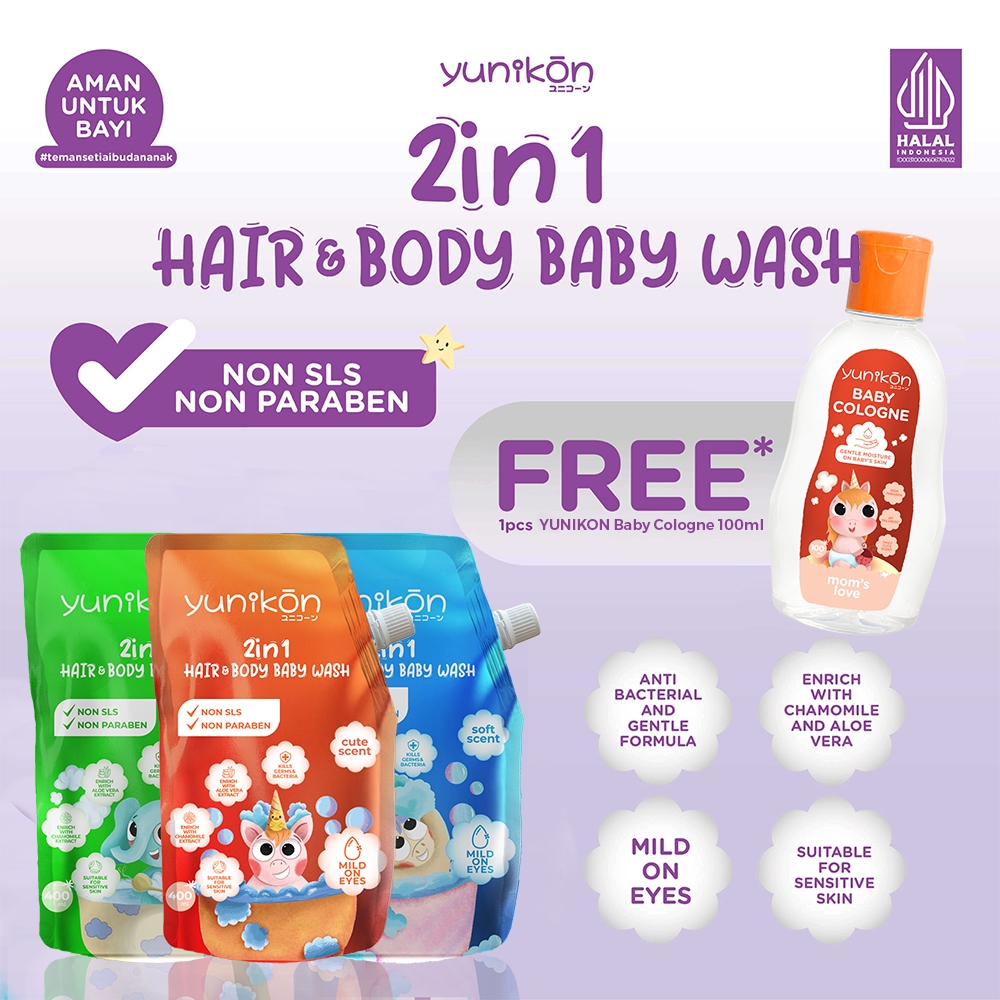 Yunikon 2in1 Hair & Body Baby Wash + Yunikon Baby Cologne 100ml Sabun & Shampoo Bayi