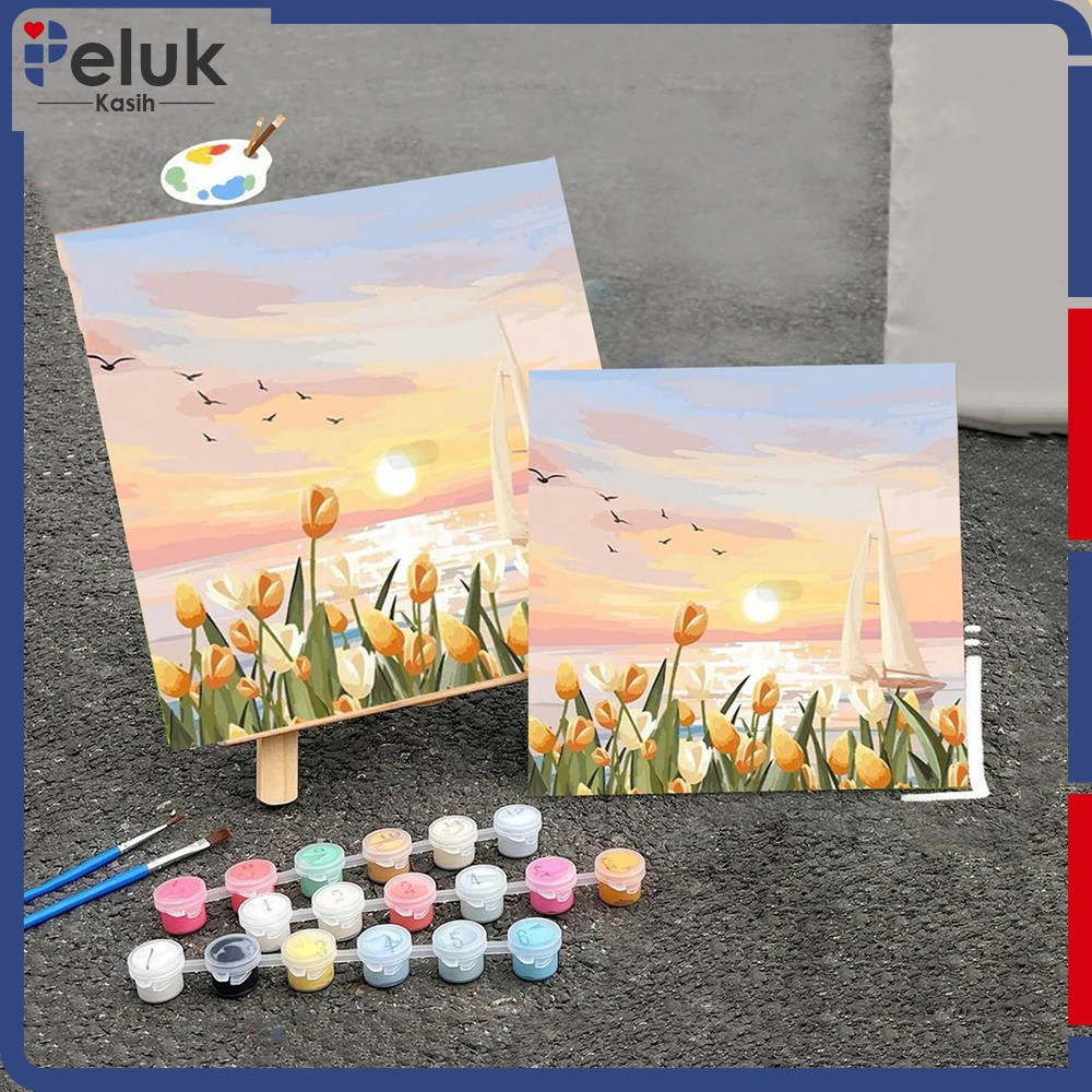 Paint By Number Kit Uk 20x20cm Kanvas Siap Lukis Bunga Pemandangan / Wall Decoration Diy Digital Painting Canvas / Lukisan Canvas Acrylic Aesthetic Peluk Kasih A110