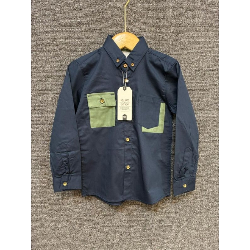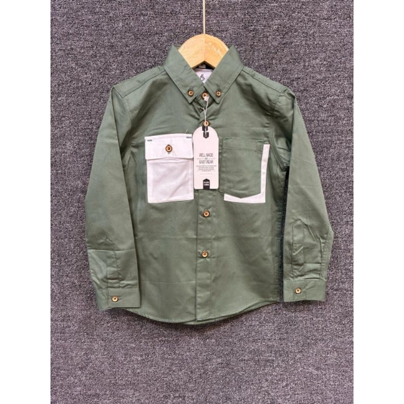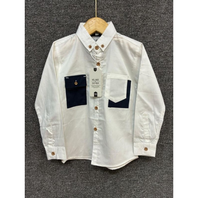 Kemeja Panjang Formal anak Laki laki Kemeja panjang Kerah model kombinasi Kemeja Panjang Anak Usia 1 sampai 13 tahun warna putih Nevi Sage