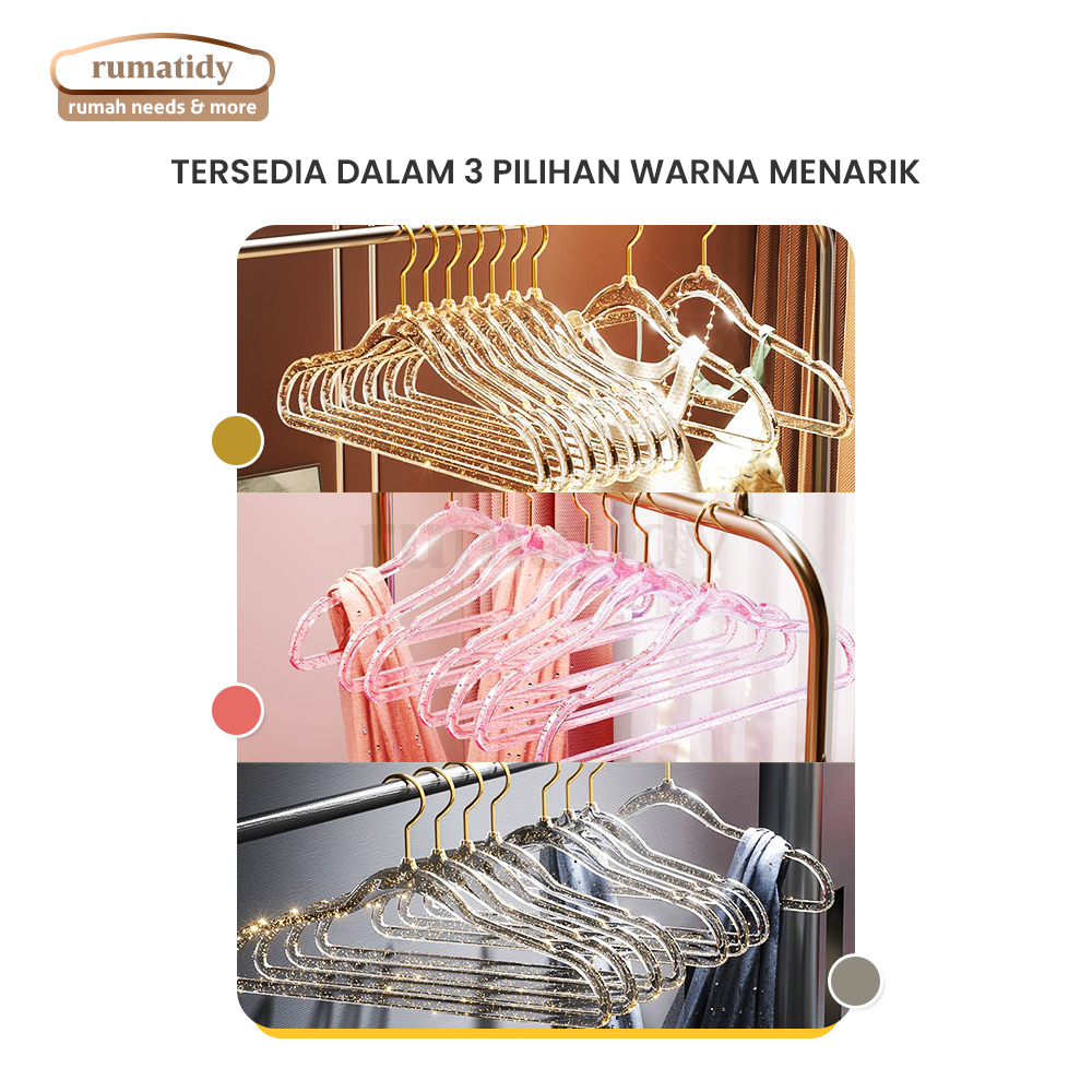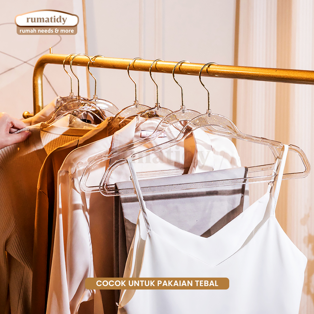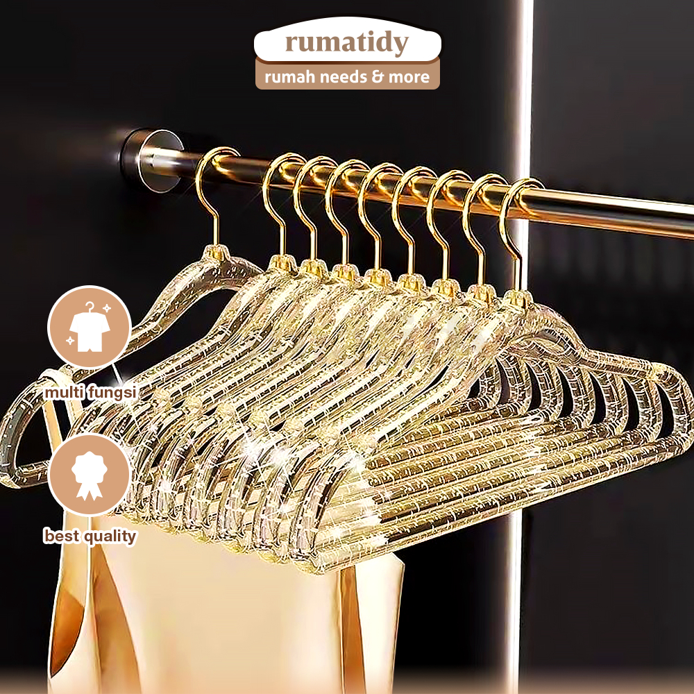 Rumatidy - Hanger Crystal Gantungan Baju Dewasa Plastik Berkualitas Estetik Elegan Set Isi 10 Pcs