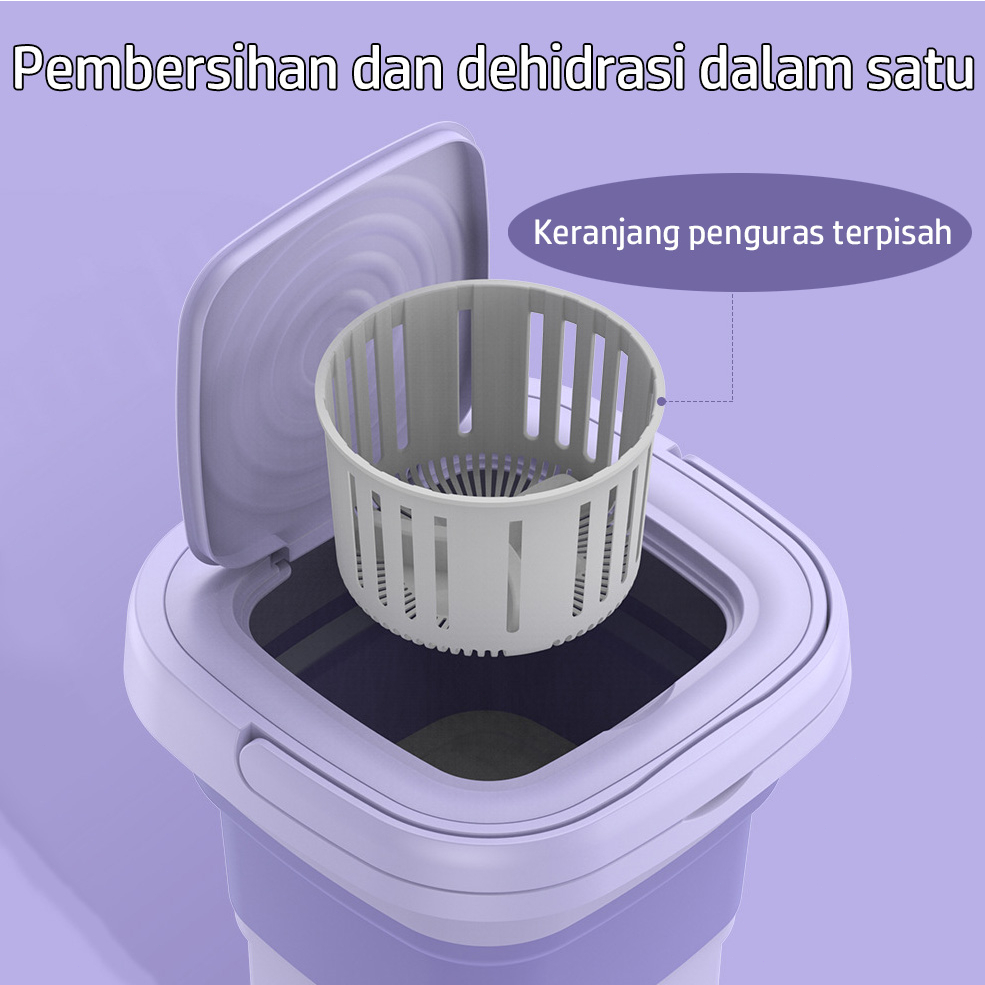 Keeone Mesin Cuci Mini Portable 2 Tabung 8L Mesin Cuci Lipat Otomatis Mesin Pengering Pakaian Sterilisasi Cahaya Biru