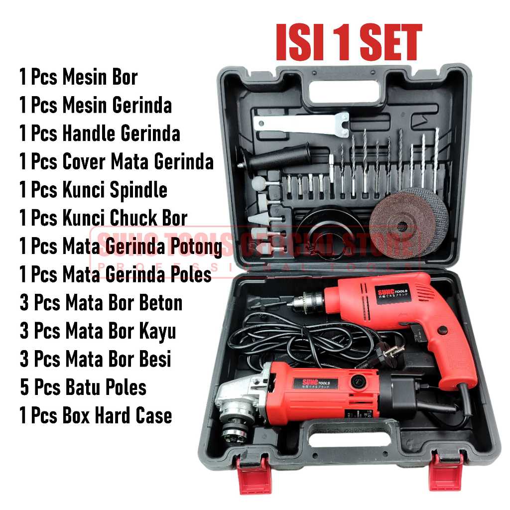 SUNC TOOLS Mesin Bor Listrik + Mesin Gerinda Listrik 10mm SIMDK011