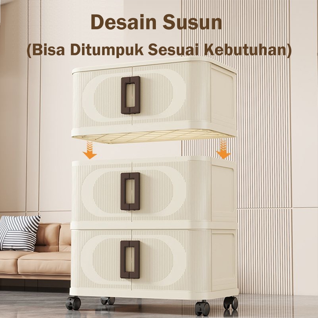 Salvo 40-70Cm Lemari Plastik Susun Jumbo Baju Serbaguna Wardrobe Storage Kabinet Desain Elegan Bahan Berkualitas Lemari