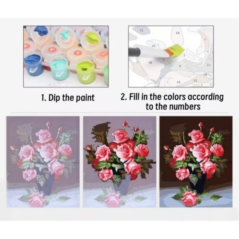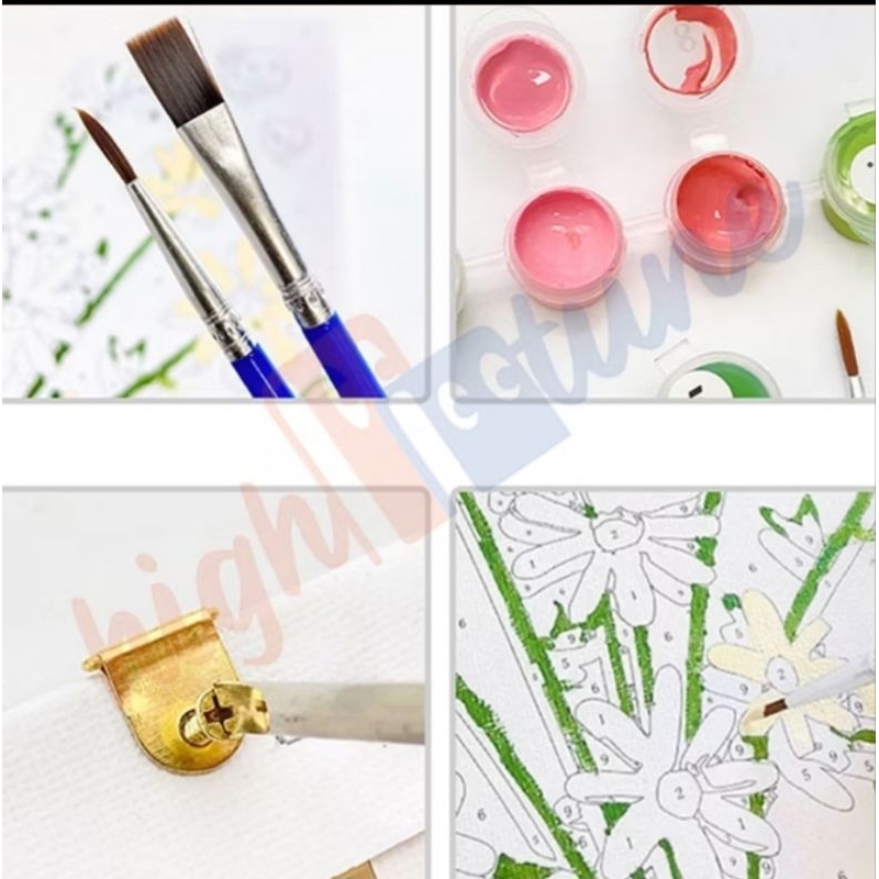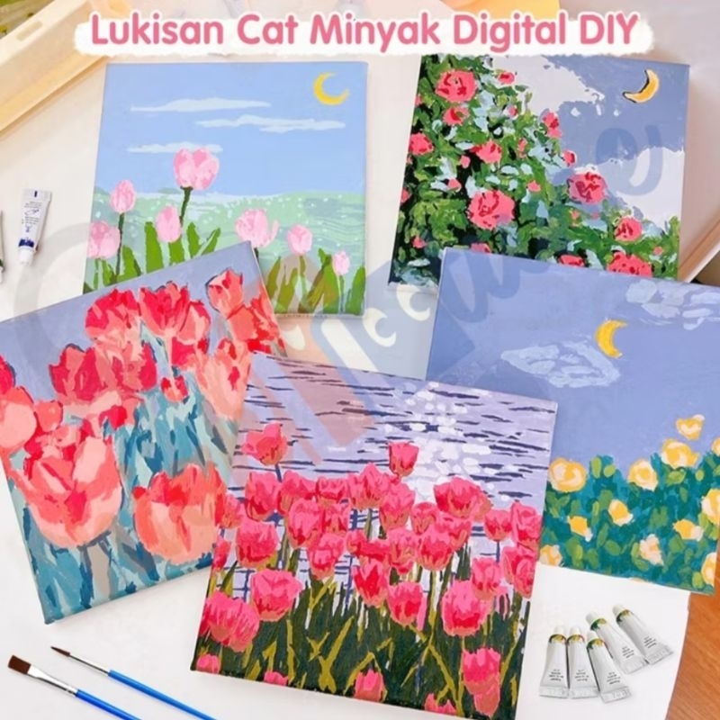 LUKISAN CANVAS KANVAS(set lengkap dengan kuas dan cat) PAINT BY NUMBER 20cmx20cm DIY DIGITAL PAINTING KIT WITH CANVAS LARIS