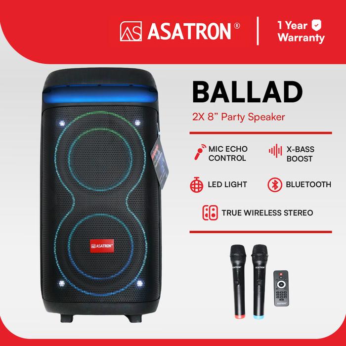 Asatron Ballad Dual 8 Inch Bluetooth Party Speaker With 2 Wireless Mic