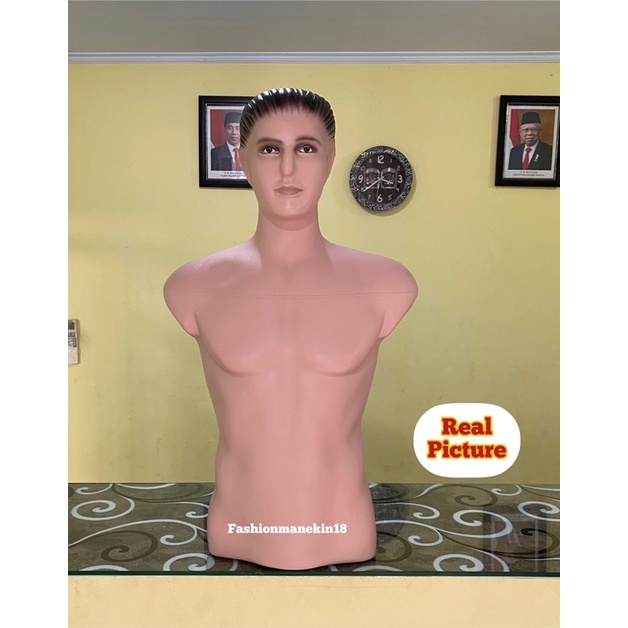 MANEKIN PRIA DEWASA TORSO SETENGAH BADAN ADA KEPALA + PATUNG BAJU PRIA + DISPLAY BAJU PRIA GAMIS KAOS KEMEJA HOODIE TOPI