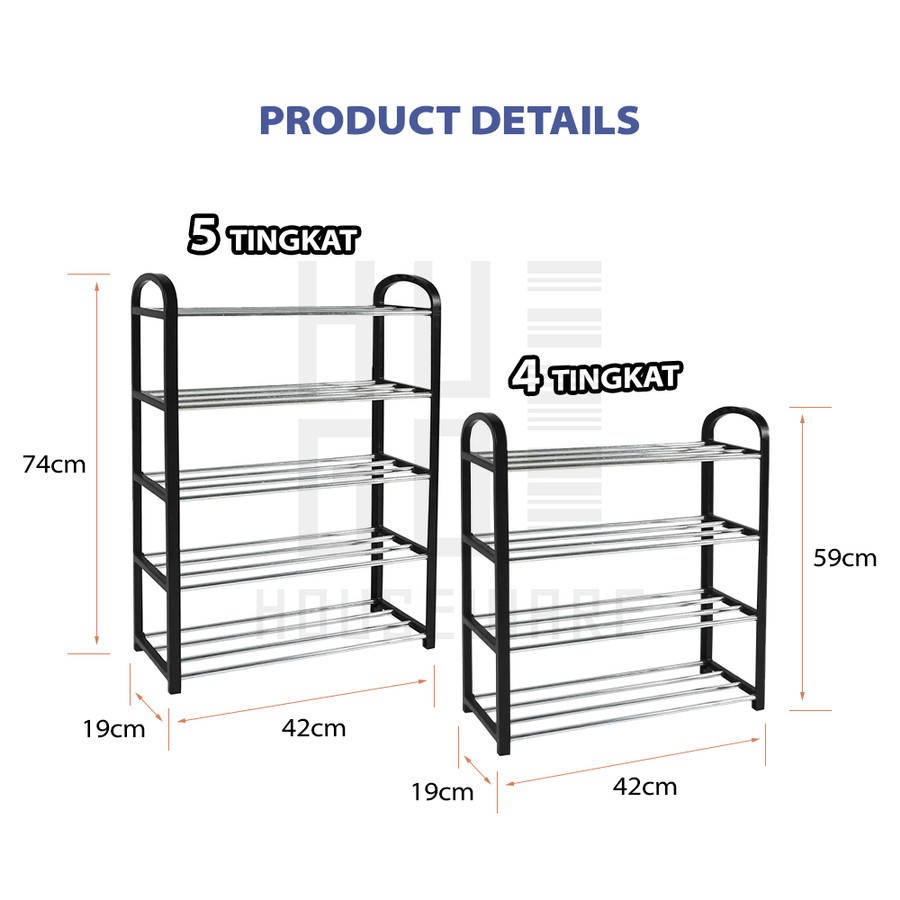 Rak Sepatu Sandal 5 Dan 4 Susun Tempat Sepatu Portable Serbaguna Stainless Steel