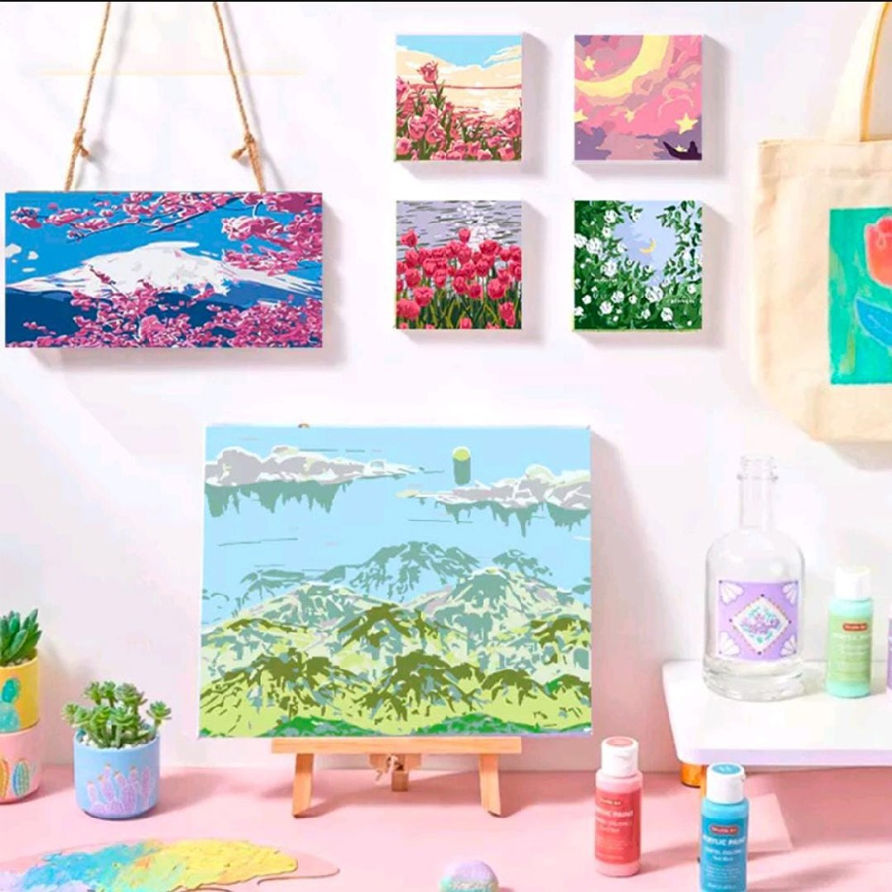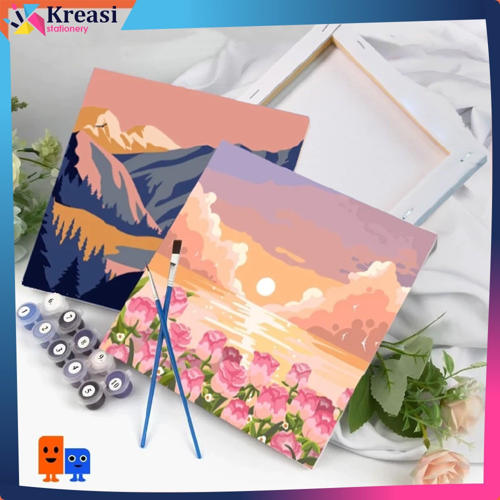 Kanvas Siap Lukis Painting By Number Kit 20x20cm / DIY Canvas Digital Painting Acrylic Aesthetic Lukisan Bunga Pemandangan Kreasi Stationery A110