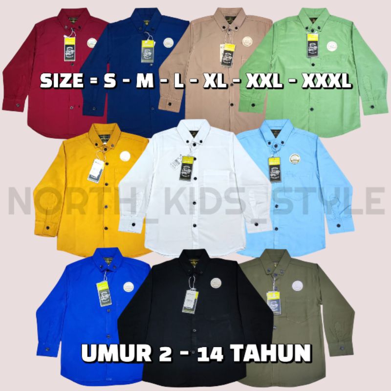 Kemeja polos anak laki laki lengan panjang umur 3 - 14 tahun katun hem slim fit